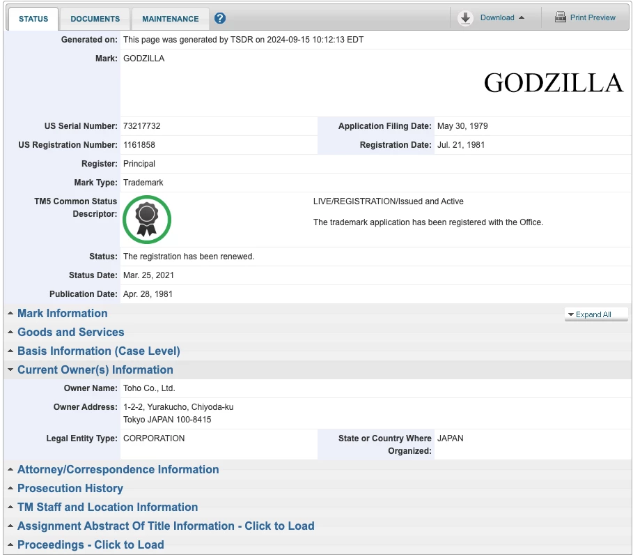 Godzilla is a registered trademark of Toho Co., Ltd.:
