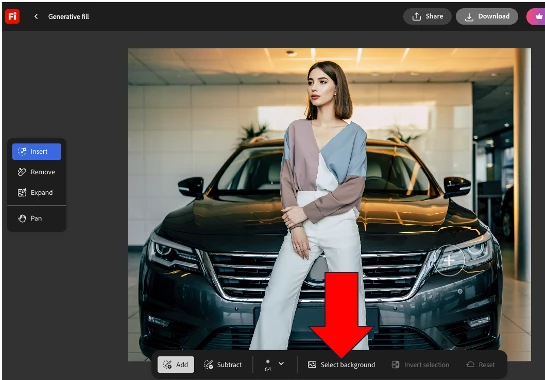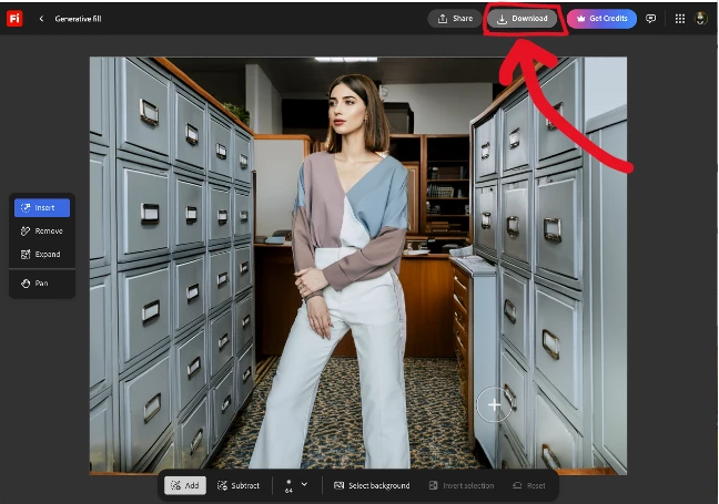 and I want to have this woman in an office, I take the image into generative fill and select the background: