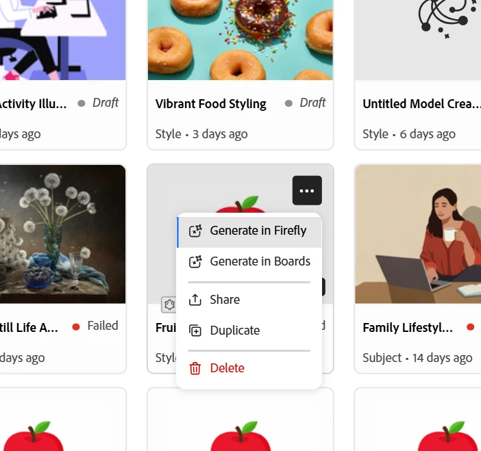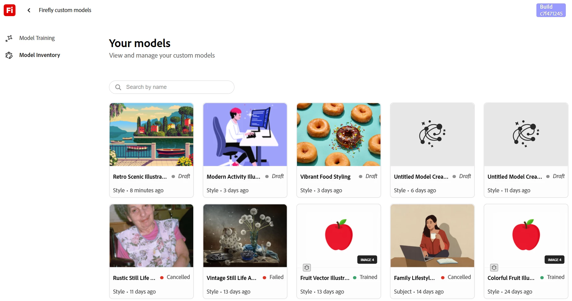 Go to Custom Models > Model Inventory to see all of your models. For any model with status marked as Trained, open the “...” menu and select Generate in Firefly. Can you try this and let us know what you find?