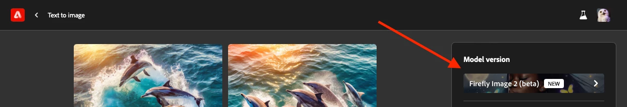 1. Open Firefly Image 2 (beta) by going tohttps://firefly.adobe.com/ and selecting Text to image. Check to make sure you're on Firefly Image 2 (Beta).