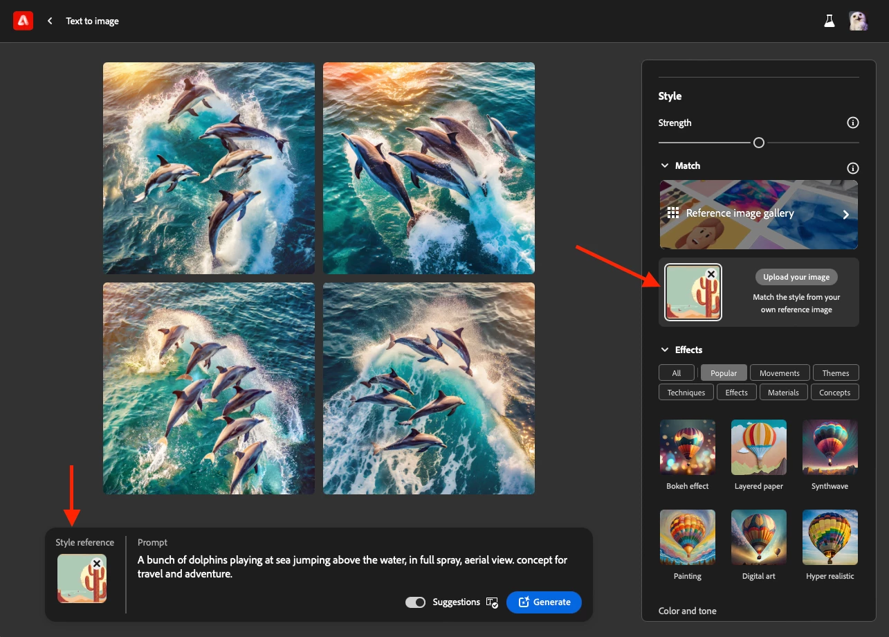 Note: If you're using an image that is not your own, ensure you have the required permissions to use the image. Also, Adobe Firefly checks the Content Credentials of the image before using it to style output.