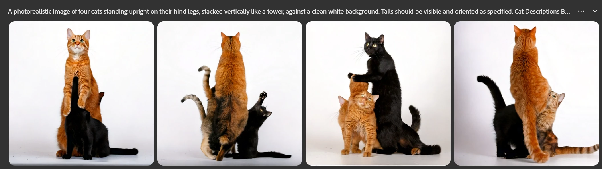 Below is my prompt, which largely worked at ChatGPT, but I wanted to try Firefly since I've been an Adobe Photoshop user for many years. I'm hoping that the terrible results are due to a difference in the rules of prompting for Firefly. I'm seeking advice. Also, am I correct in understanding that no follow-ups to make corrects are allowed; instead I must try a different prompt to see how it is interpreted?