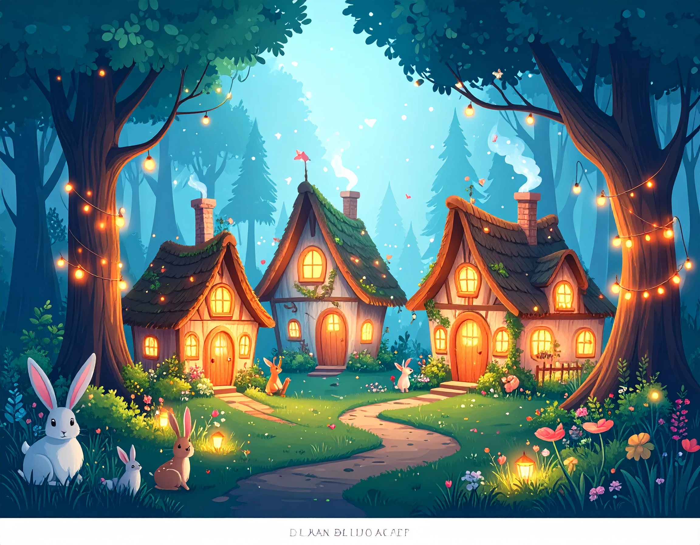 Create a vector illustration inspired by children’s stories, think magical castles, talking animals, tiny adventurers, or whimsical forests.