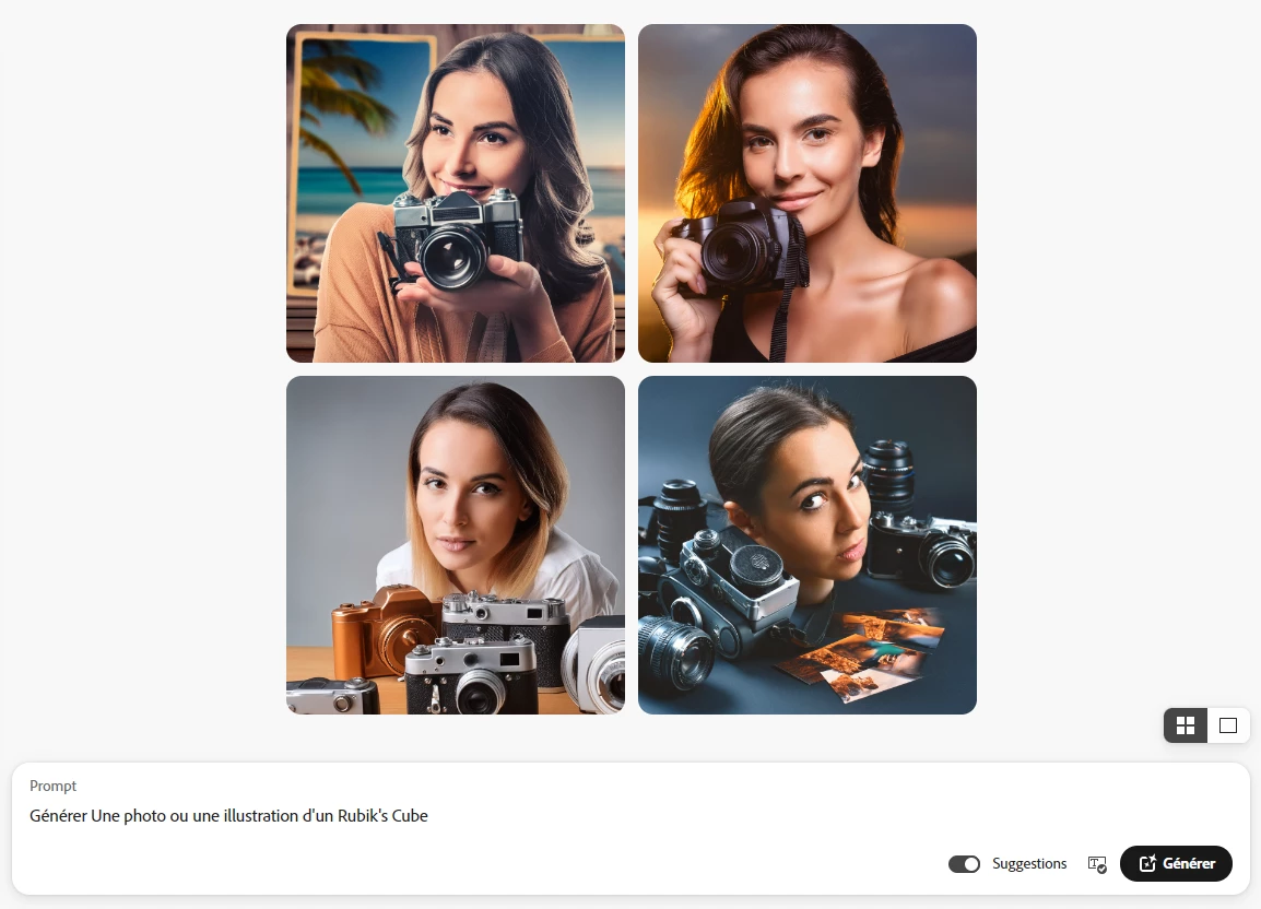 voici une capture des images générées pour une demande d'image de rubik's cube !