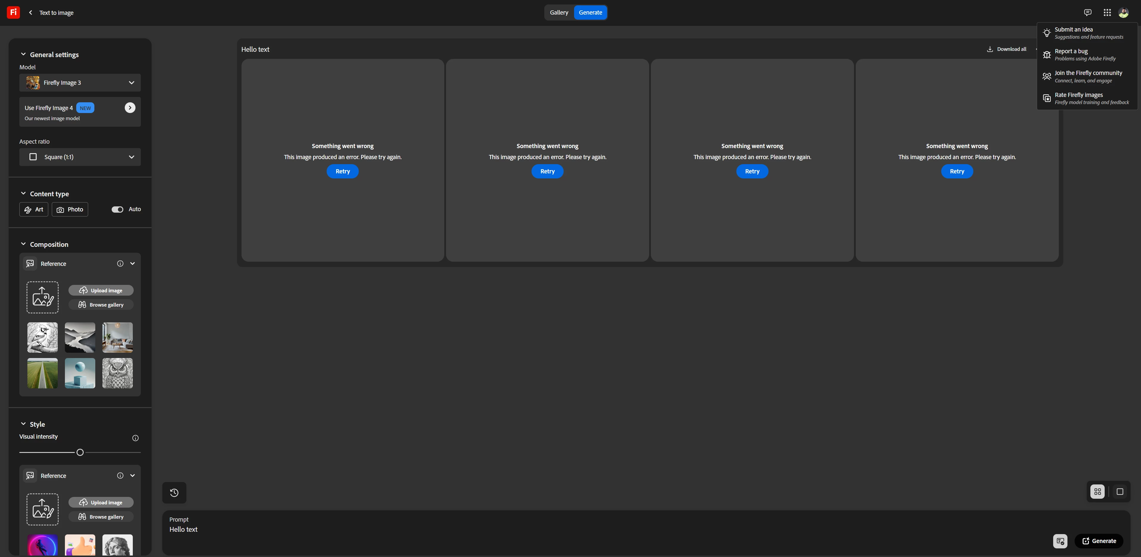every time i try to use Adobe Fire Fly This happening