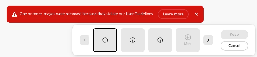 I have been trying to use firefly to create an underwater scene for a mermaid shoot; the mermaid model is approperiately covered. The first attempt was fine and I created a sandy underwater seabed. I then tried to generate flowing seaweed, Firefly generated these with no previews, when I clicked on the previews, the images had been removed for violating Adobe standarde. Can anyone shed any light on this? Descriptions were words like flowing tropical seaweed, and one shiny pearl.