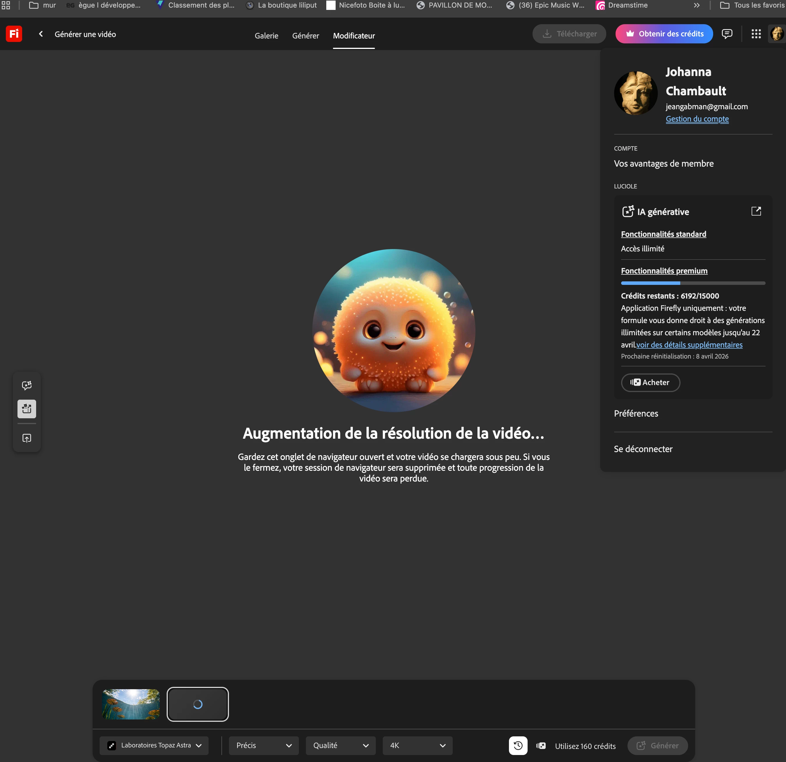 bonjour , la fonction  "augmentation de la résolution" ne fonctionne pas , elle a mouliné toute la nuit et ce matin  ( donc environ 20 heures ) et suite à l'annulation,  pres de 512 credits ont été effacés . .