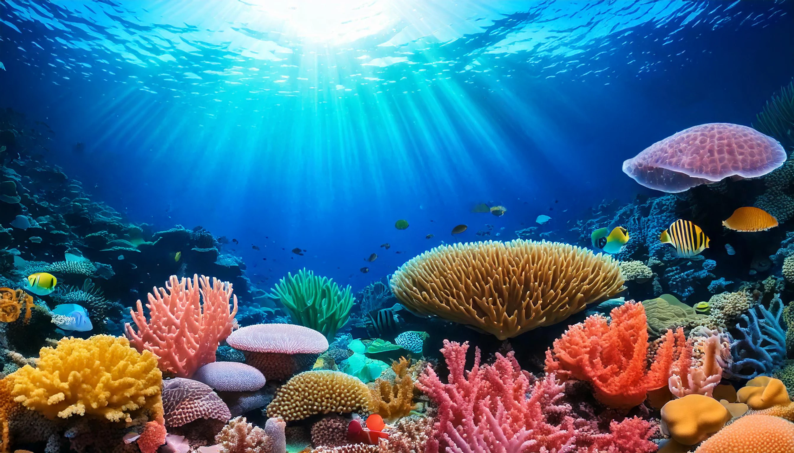A beautiful underwater scene with a variety of sea plants.