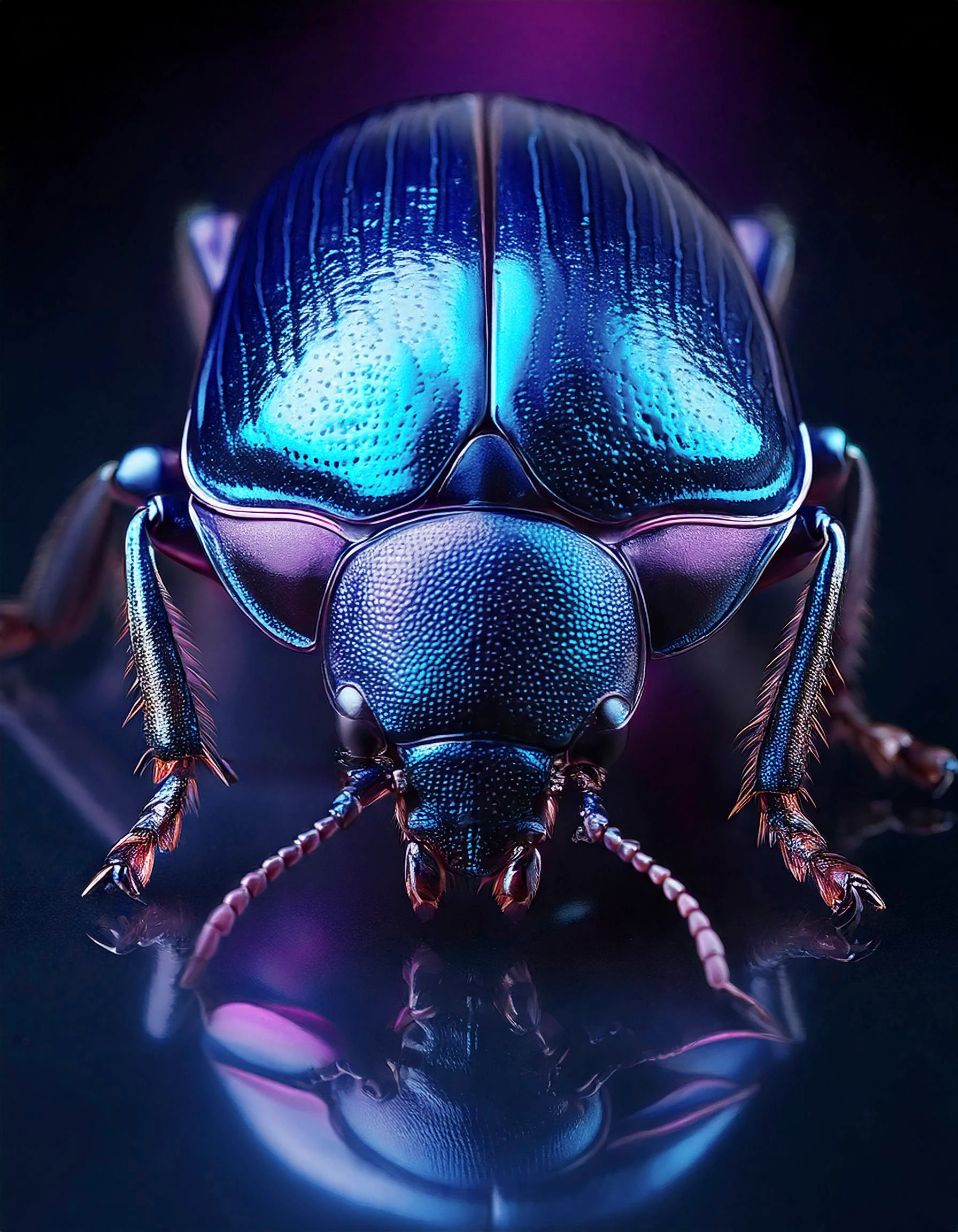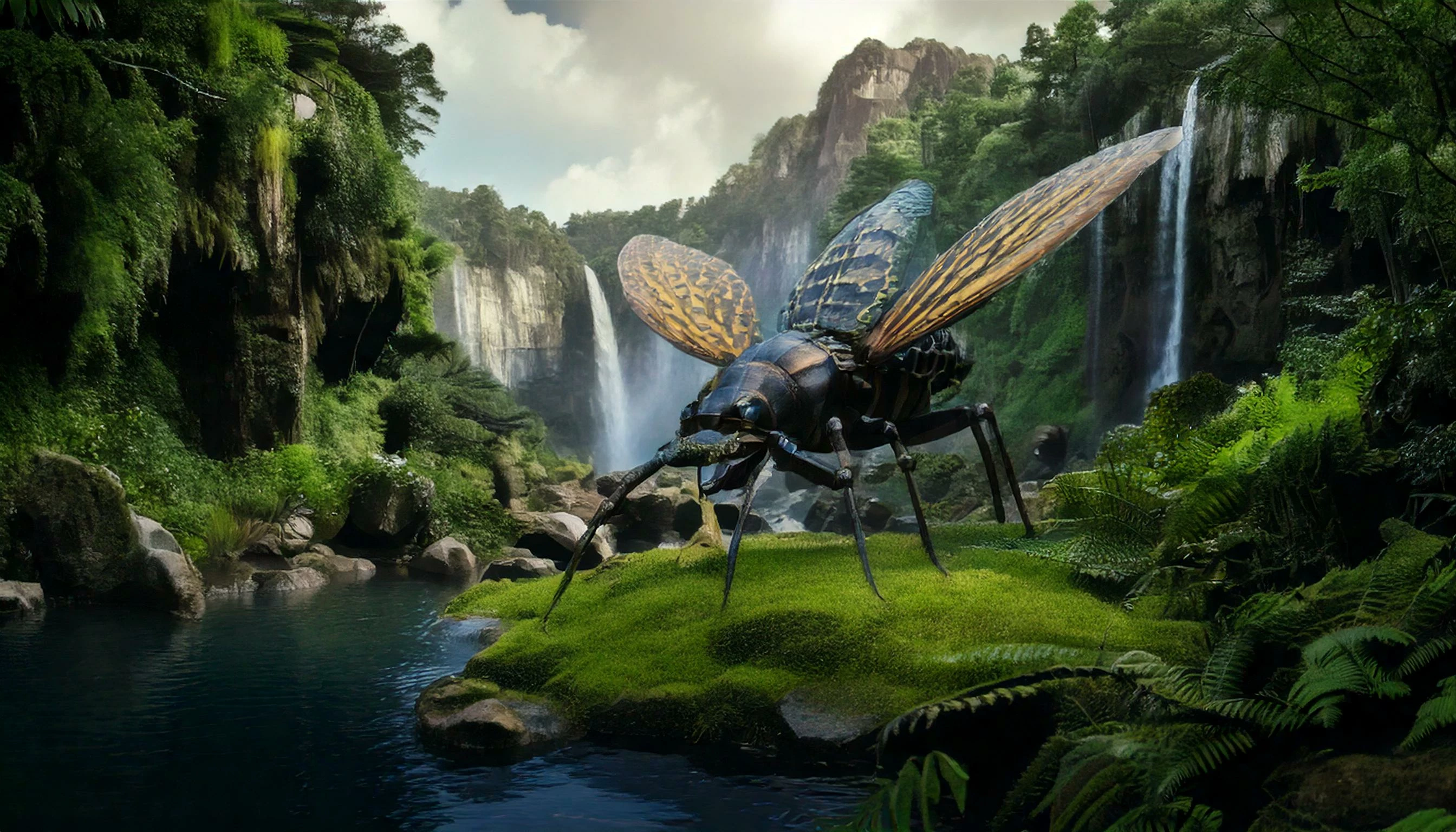 I created this alien insect using Firefly for the base design, then refined the details and atmosphere in Photoshop. Played around with colors and lighting to bring the scene to life.