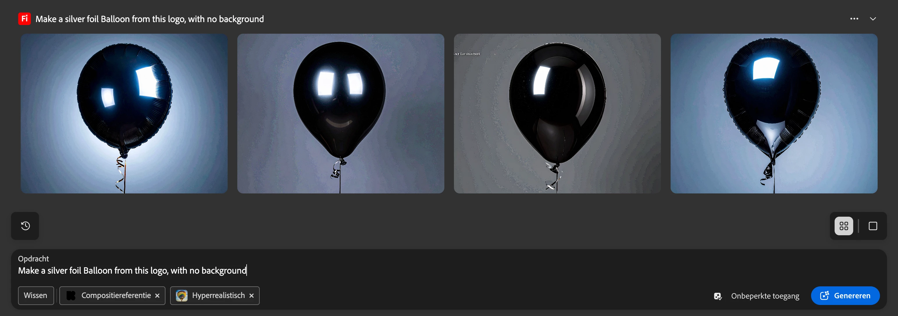 I want the logo (see attachement) in the shape of a silver foil balloon. My prompt is "Make a silver foil Balloon from this logo, with no background"- but the result is not what i have in mind....