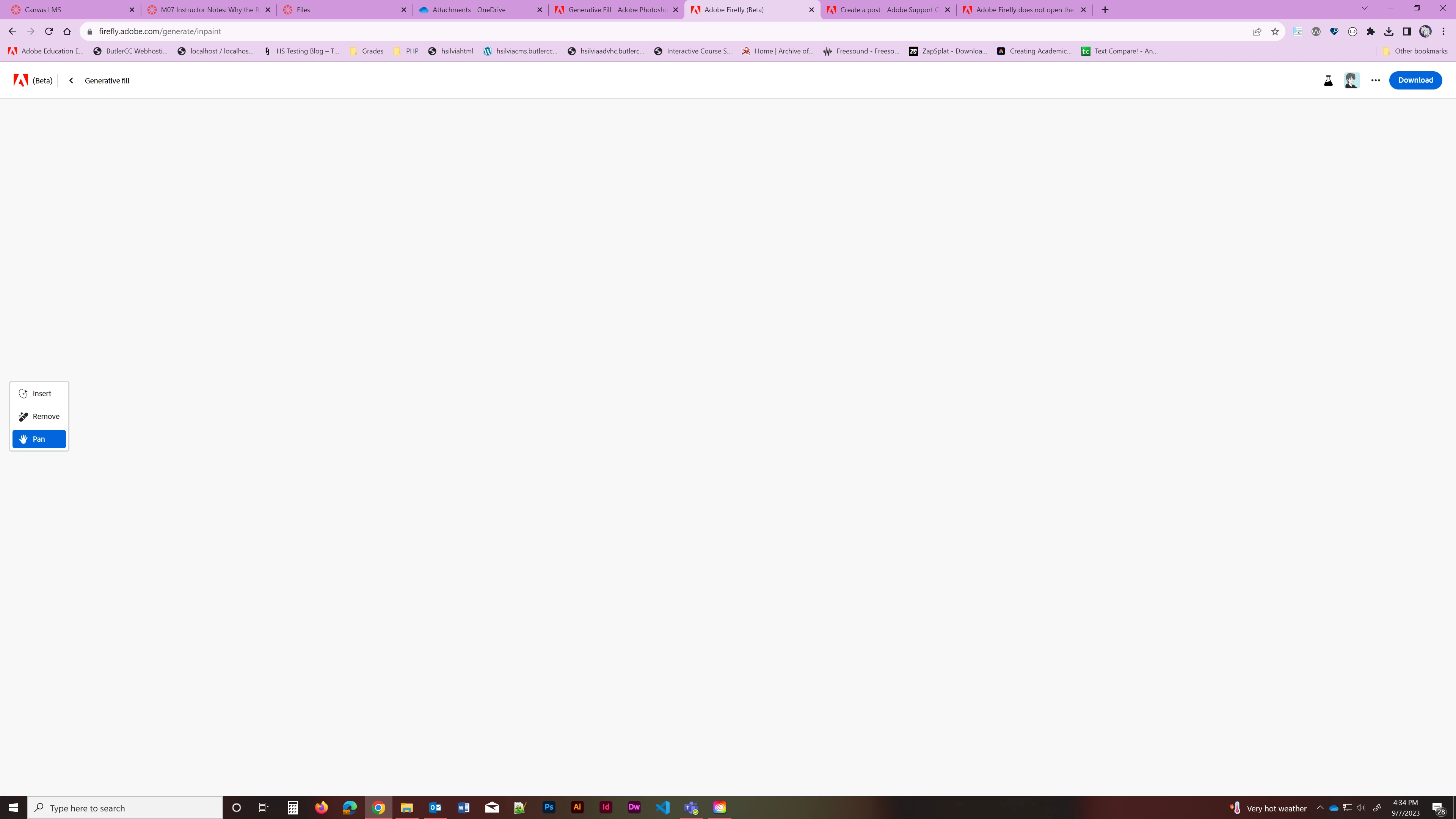 I am trying to use the generative fill on a photo, but it won't show me the image so I can edit.