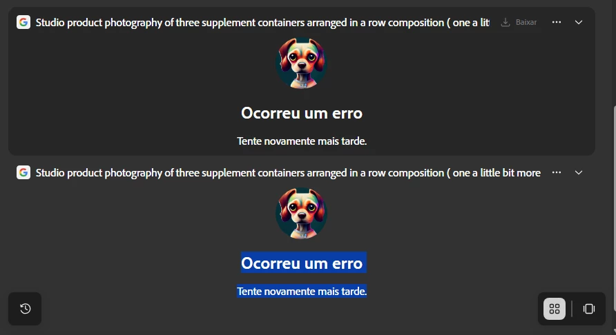 Ocorreu um erro Tente novamente mais tarde. E ainda sim os créditos são consumidos...