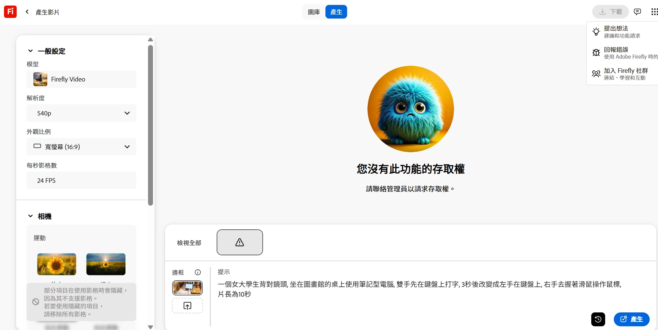 I'm trying to use firefly video generator, but it's not allowing me. Saying the following (see screenshot)