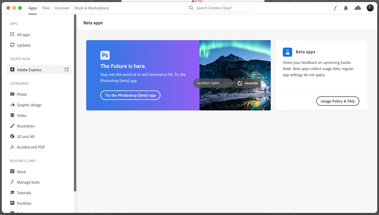 I have access to Adobe Firefly, but when I click on the Photoshop (beta) app to download from CC, it does not work. There is also no beta apps section in the left toolbar on CC. I can access the online version, but would like to try it out on Photoshop.