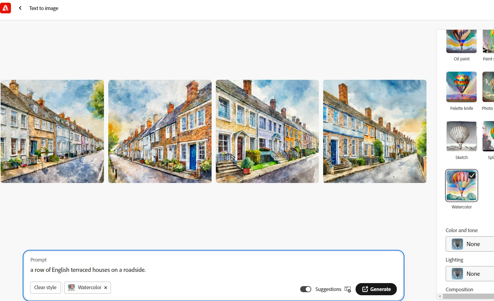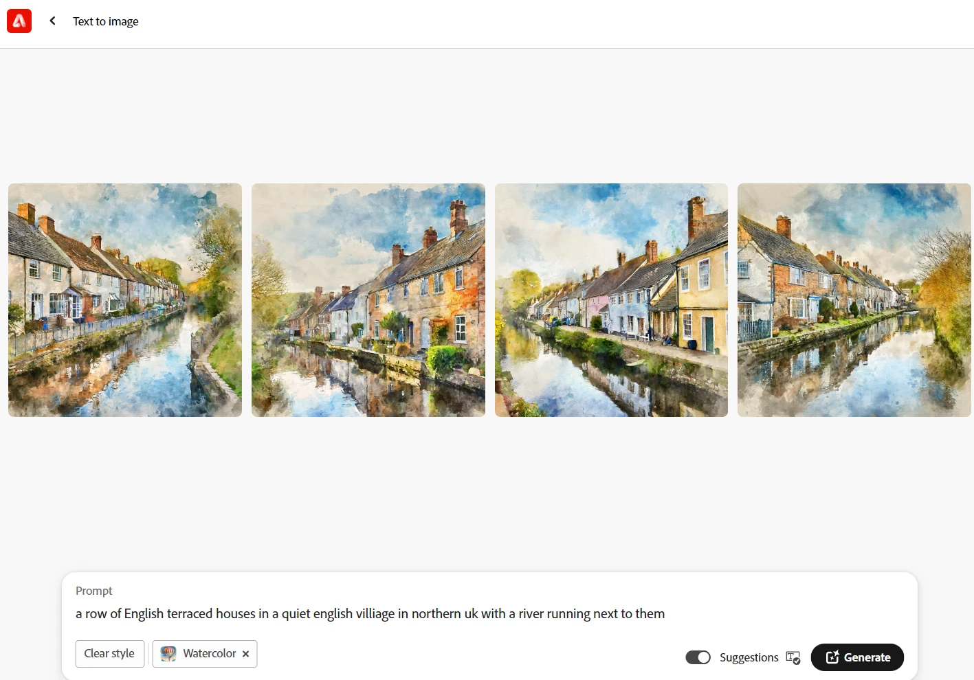 Here you go. The prompt was "A watercolour of a row of English terraced houses on a roadside." This looks like we still live in Shakespearean times!