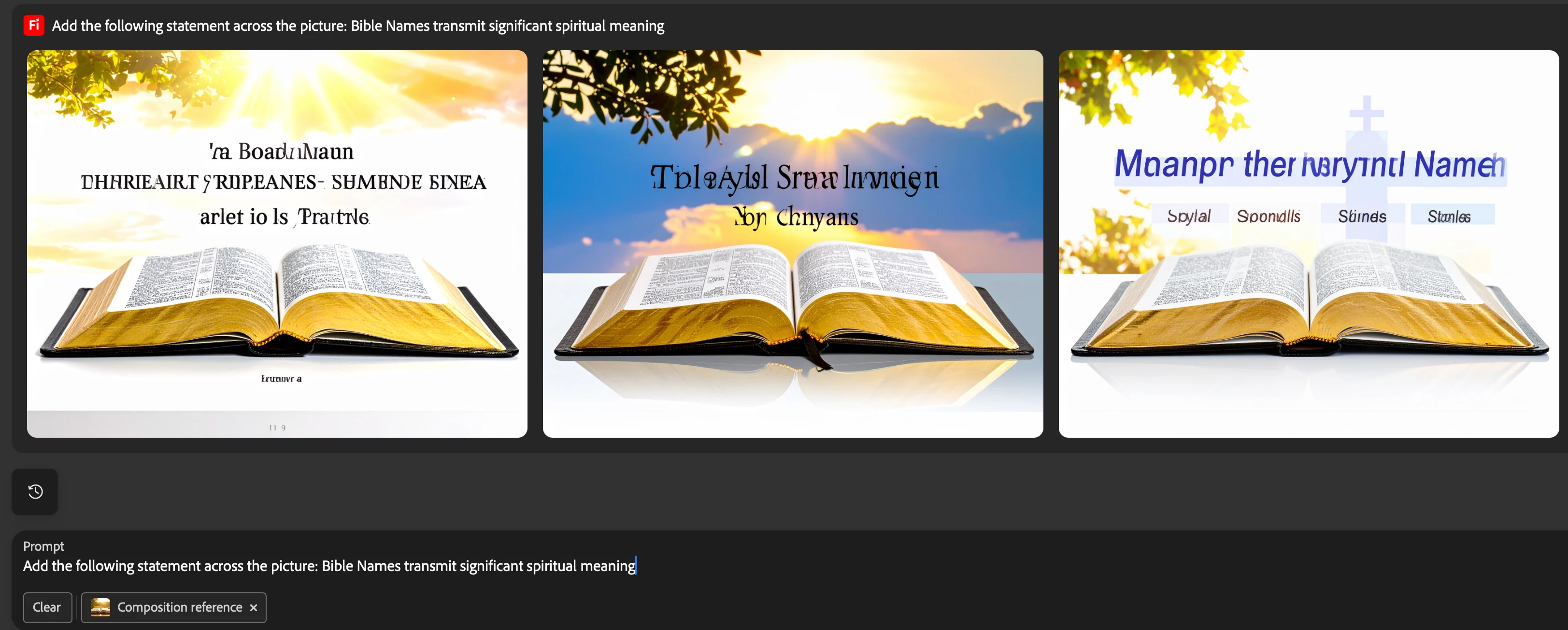 Thanks for writing in. Currently, there are limitations in creating text in the generation results. You can add text in Adobe Express to your generated images: https://adobe.ly/3JsyR8E