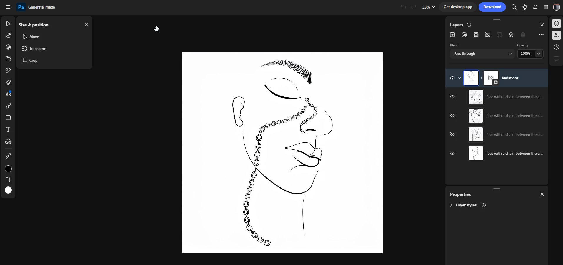 When you click on a layer in Photoshop, it opens as a PSB file. That’s where the variants appear.