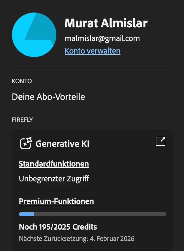 Das Problem: Meine monatlichen Credits hätten laut Anzeige am 29.01.2026 zurückgesetzt werden sollen. Dies ist jedoch nicht geschehen. Stattdessen hat sich das Datum für die nächste Zurücksetzung automatisch auf den 04.02.2026verschoben, ohne dass mein Credit-Guthaben vollständig aufgefüllt wurde.