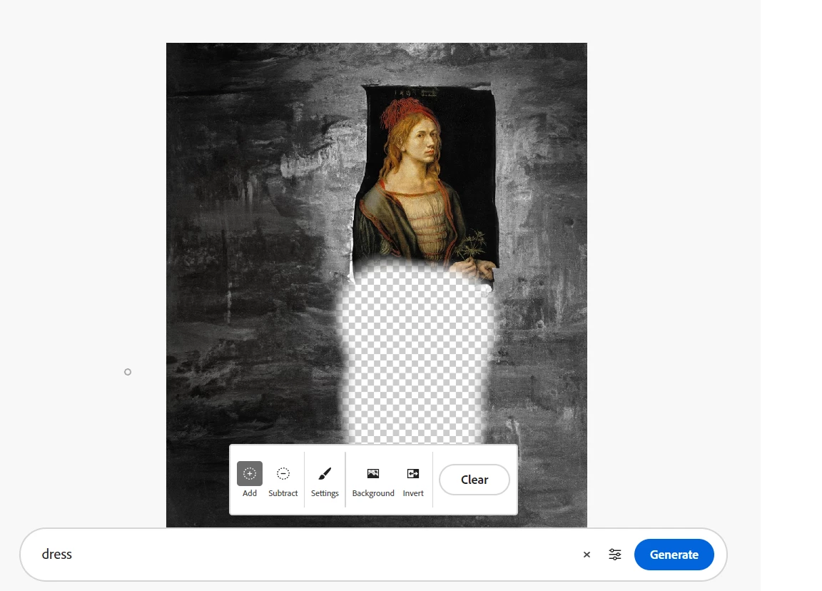 You would have more luck fixing the background and selecting the part you would like to generate 'dress' for example.