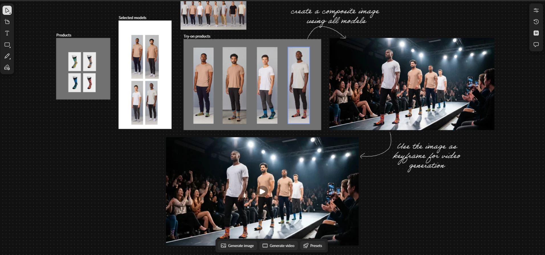 the video generated disregarded the prompt submitted altogether. mix matched the clothing, used the backgrounds from the photos versus the what was prompted and cut off the models heads. wasted my credits