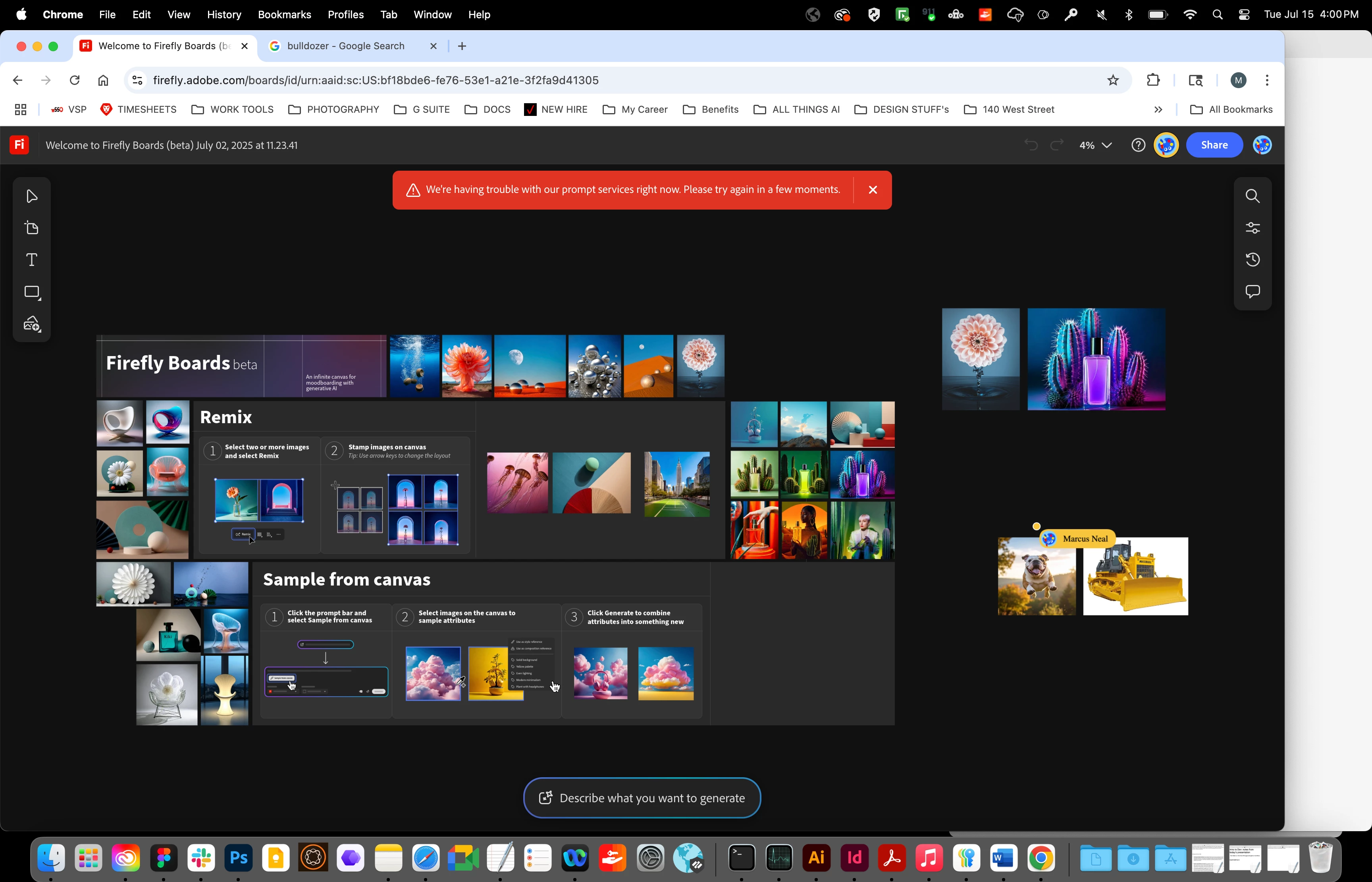 I'm unable to remix in Adobe Firefly Boards. However, some features work like image generation. This applies to Chrome, Incognito Chrome, Safari, and Private Safari. I already deleted and cleared my cache and data. I tried changing networks.