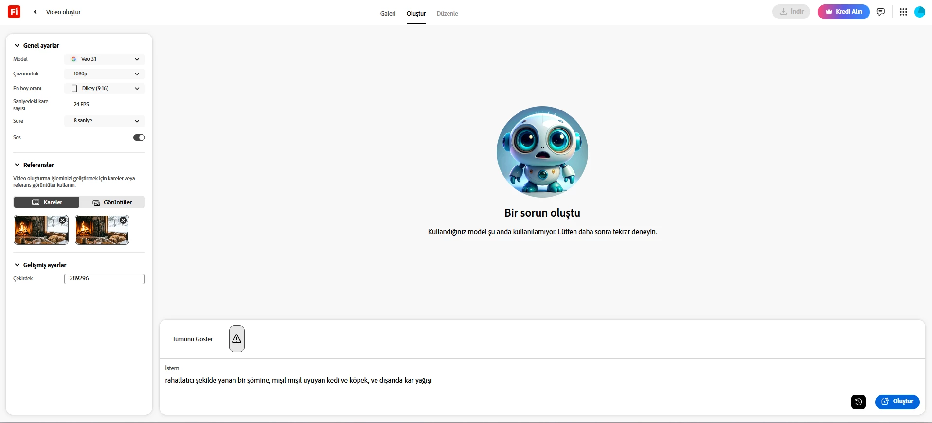 In both instances, the system encountered an error during the process. The credits were deducted immediately, but no video was produced. This is now a persistent problem that is depleting my credit balance without providing any results.