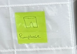 create an image of a baby trousers like in picture that I uploaded and put the name of the type of that trousers, e.g. "trousers" under it. they are suppose to be stickers/labels later for daily life on cloth boxes. take the style from the bear picture I uploaded.