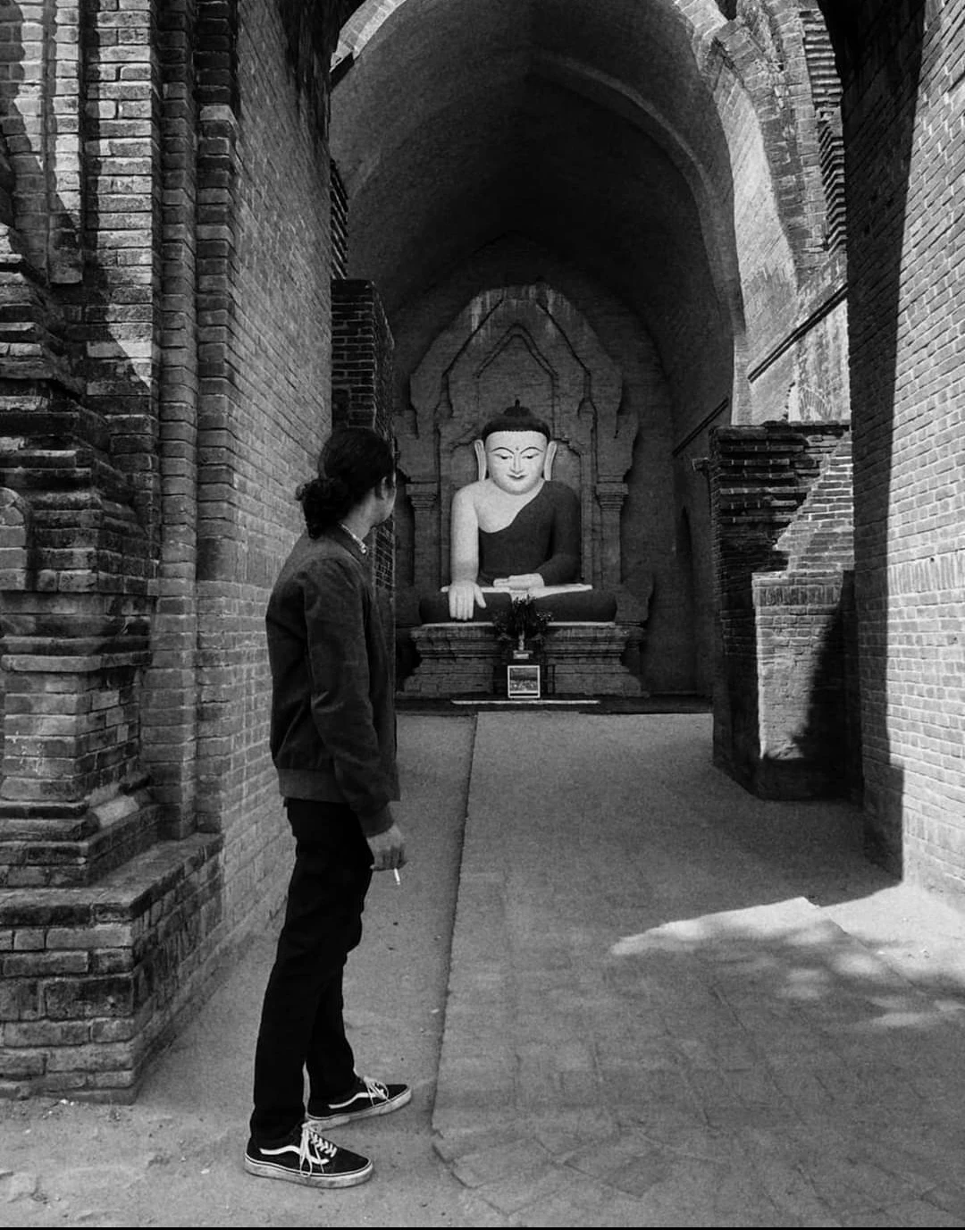 • Image: The queen gazes calmly ahead, while the guardian kneels devoutly at her feet.