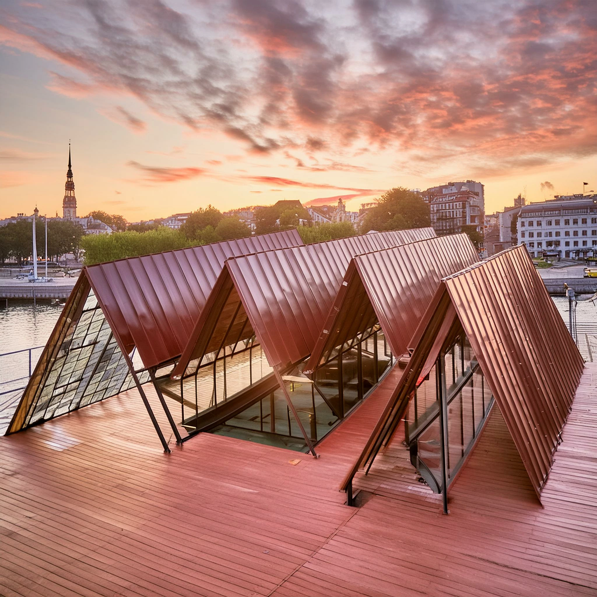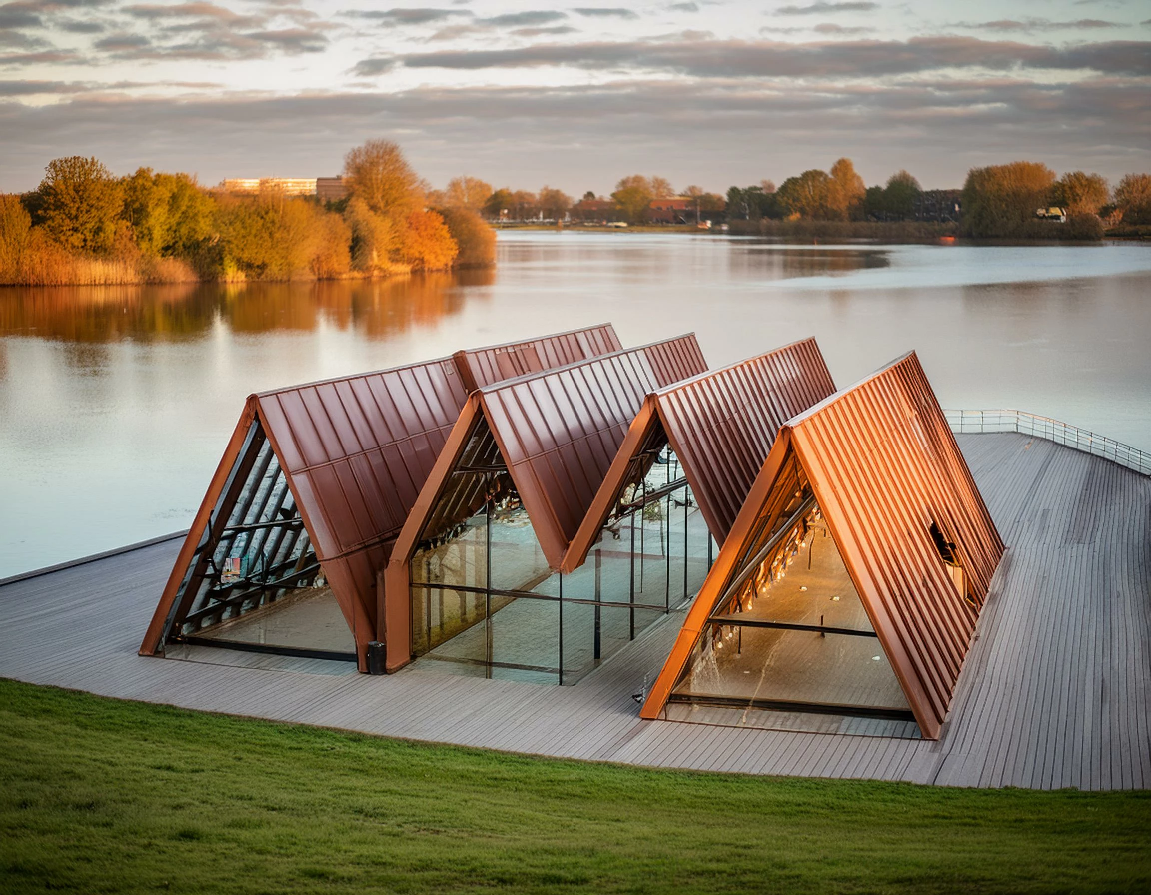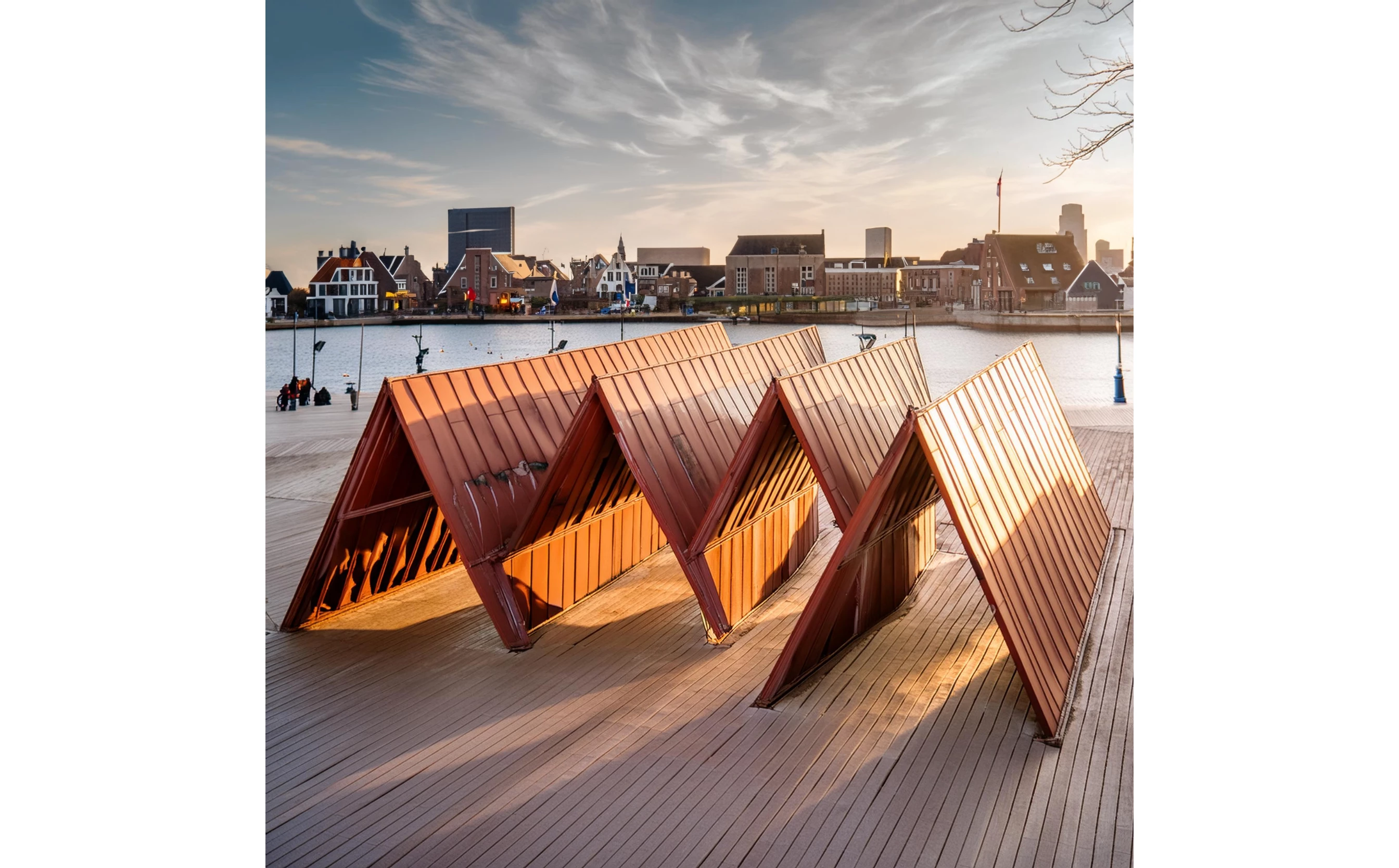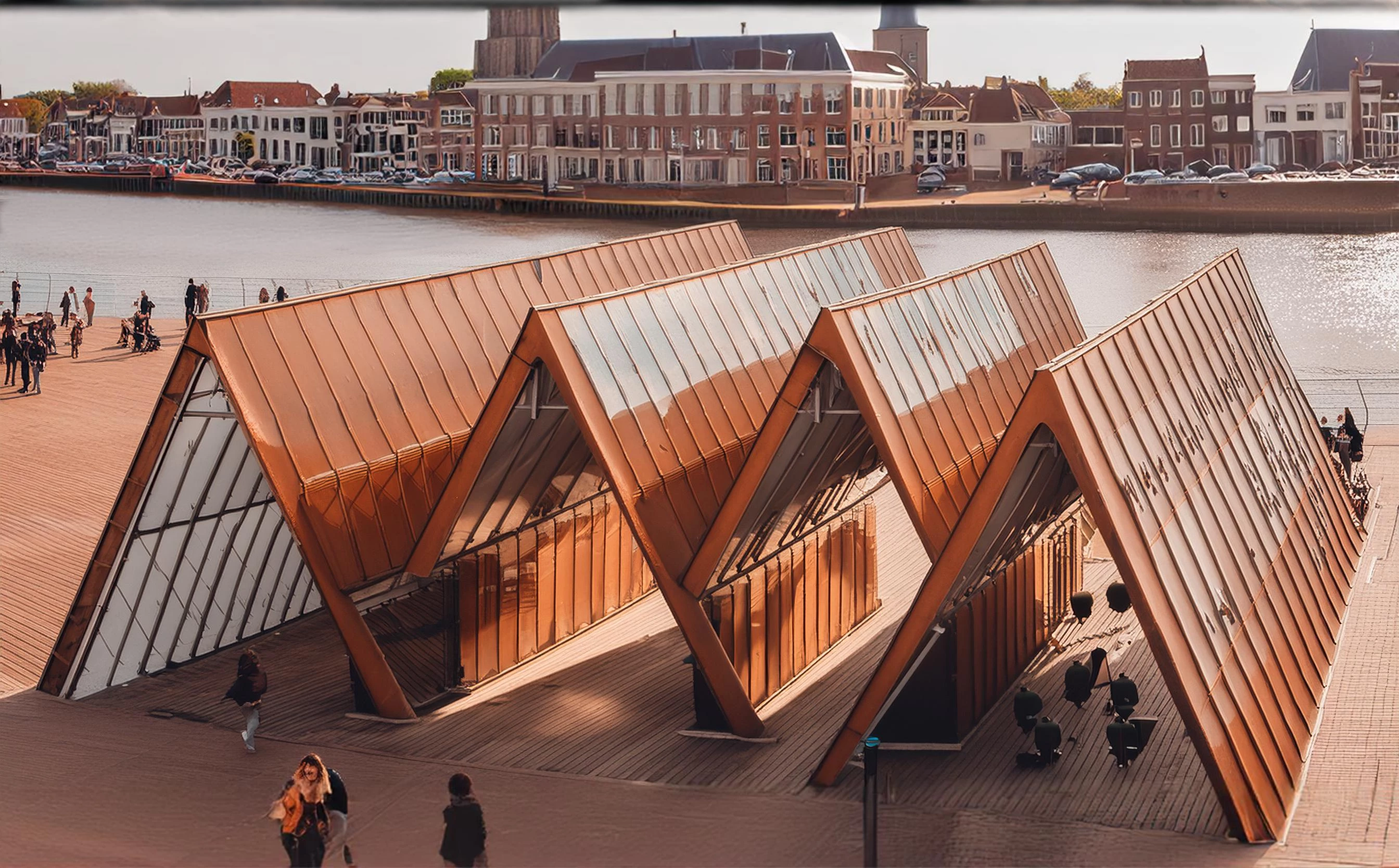 An architecture iteration of a design of a pavillion. This pavillion is in cortensteel and is placed at at square in the netherlands.