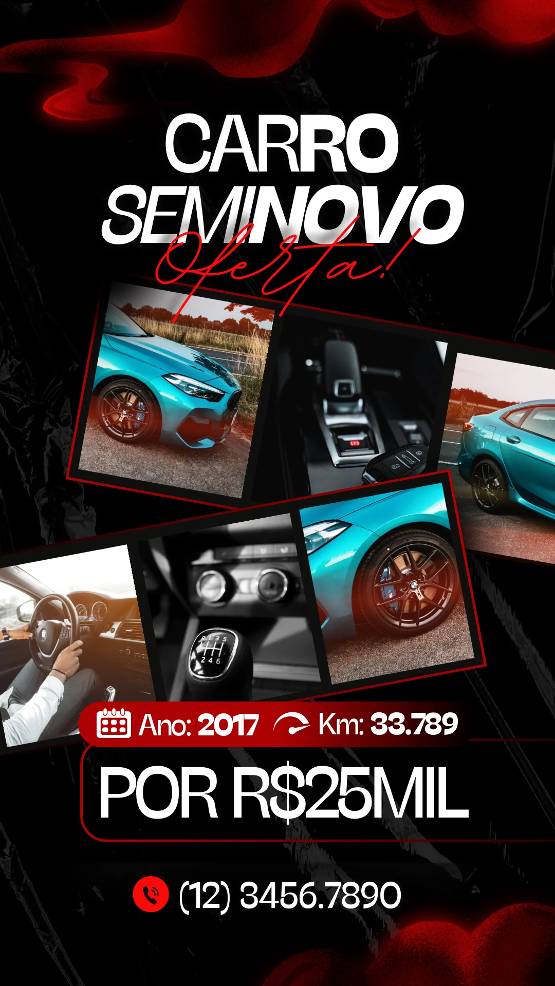 Preciso que crie uma arte para divulgação de acordo com esse modelo que enviei e adicionar as fotos do carro que enviei