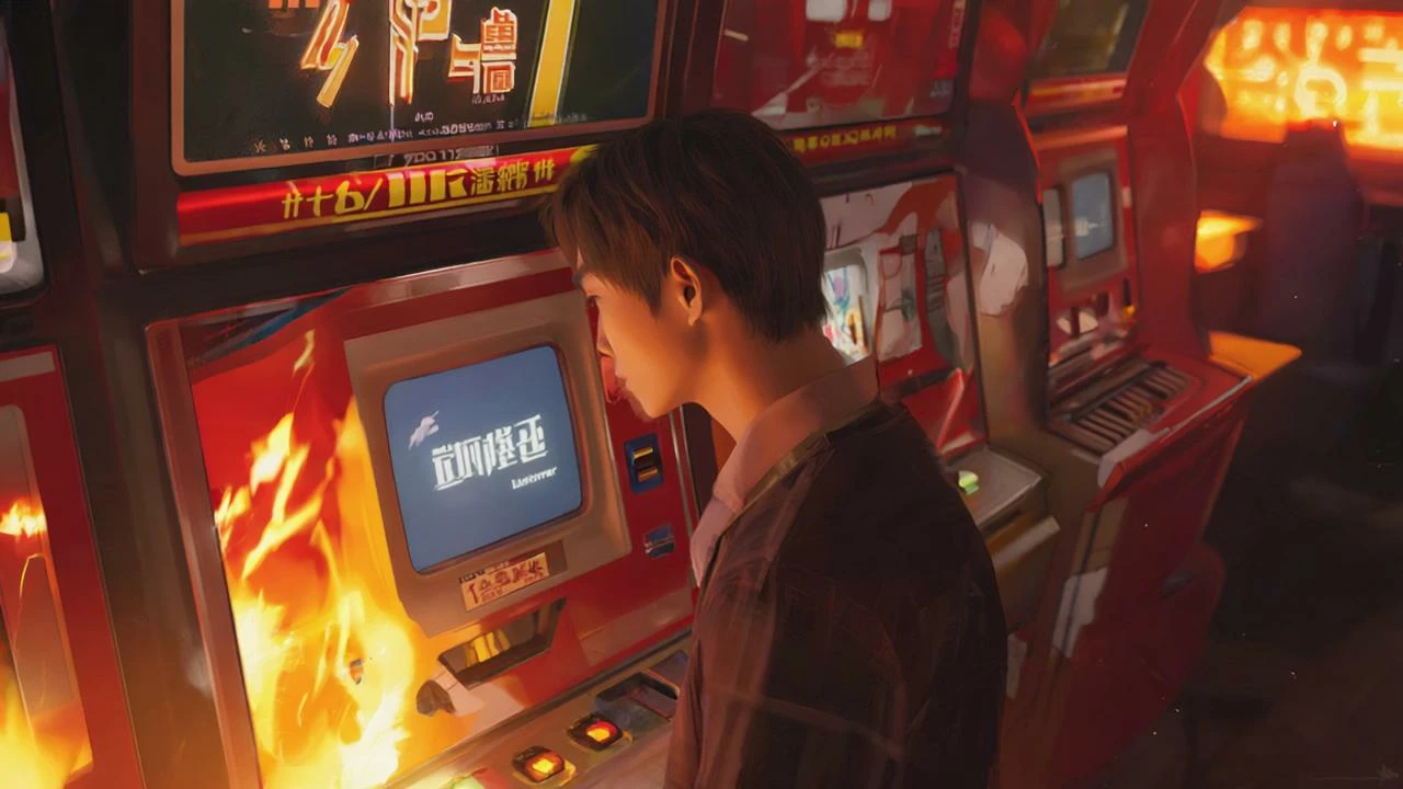 1. 爆氣哥在遊戲機前努力按下按鈕,期待中獎,但卻每次都失敗。