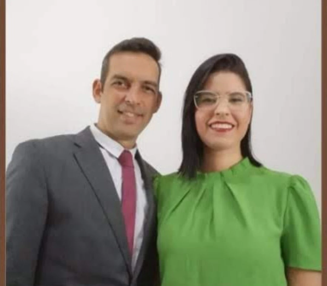 Um casal jovem de 40 anos. Ela cabelo curto preto e ele cabelo grisalho com um tapete discreto