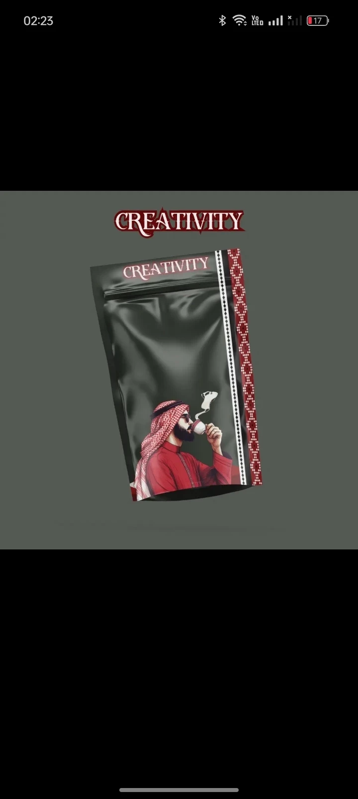 I want you to design me a perfume box that has this design with a white background and a man holding perfume instead of coffee.
