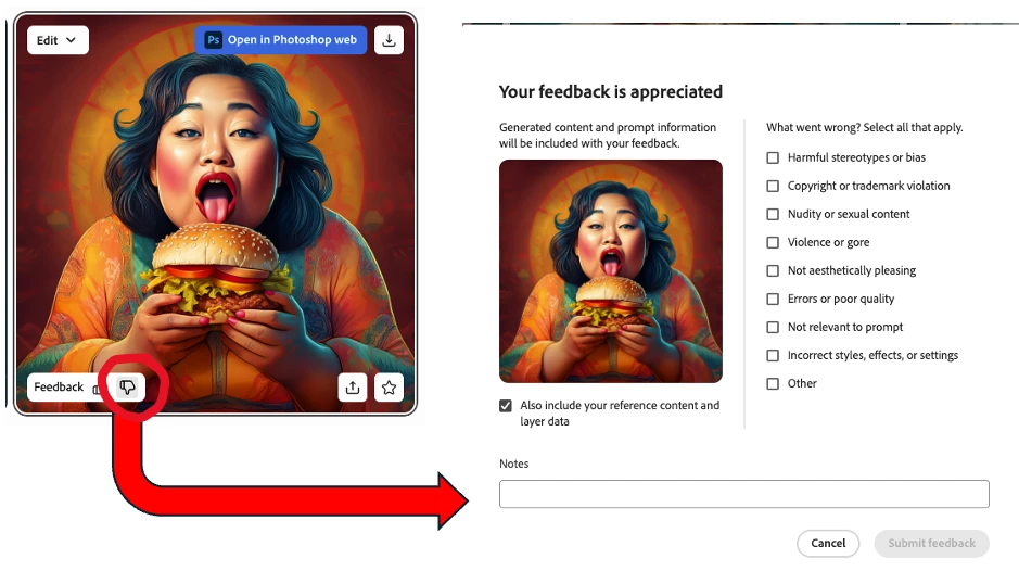 The best thing to do is thumbs down the image and provide detailed feedback. That feedback goes to the people working on improving the model.