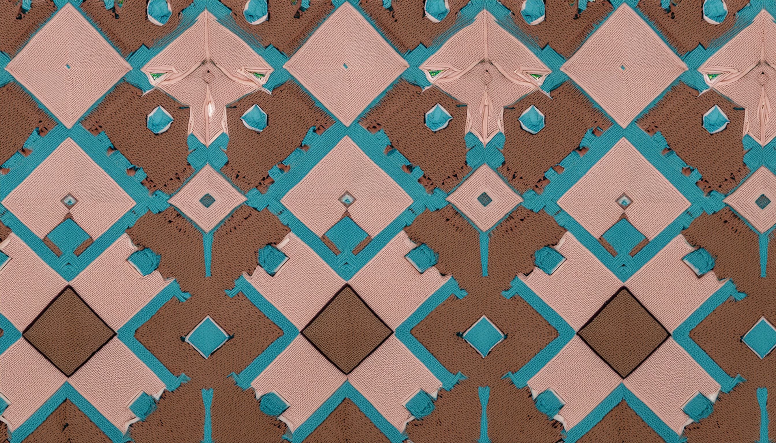Prompt: endless plush hideous hotel broadloom carpet, repetitive pattern, seamless interlaced geometric design, geometric shapes, random patterns, pink light-blue brown