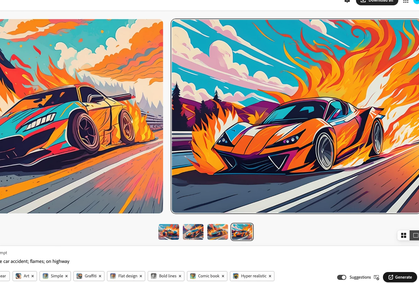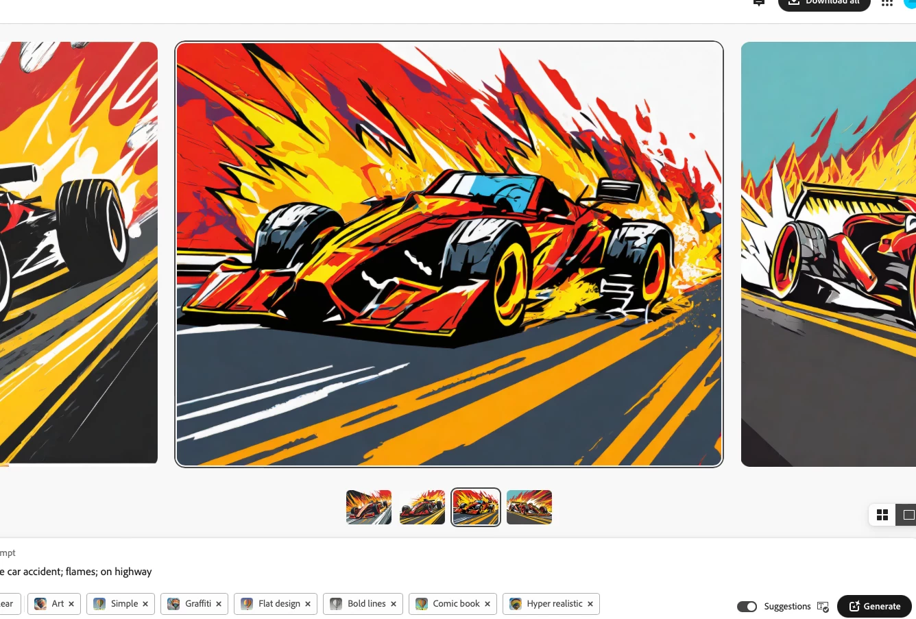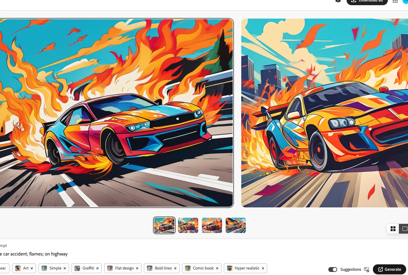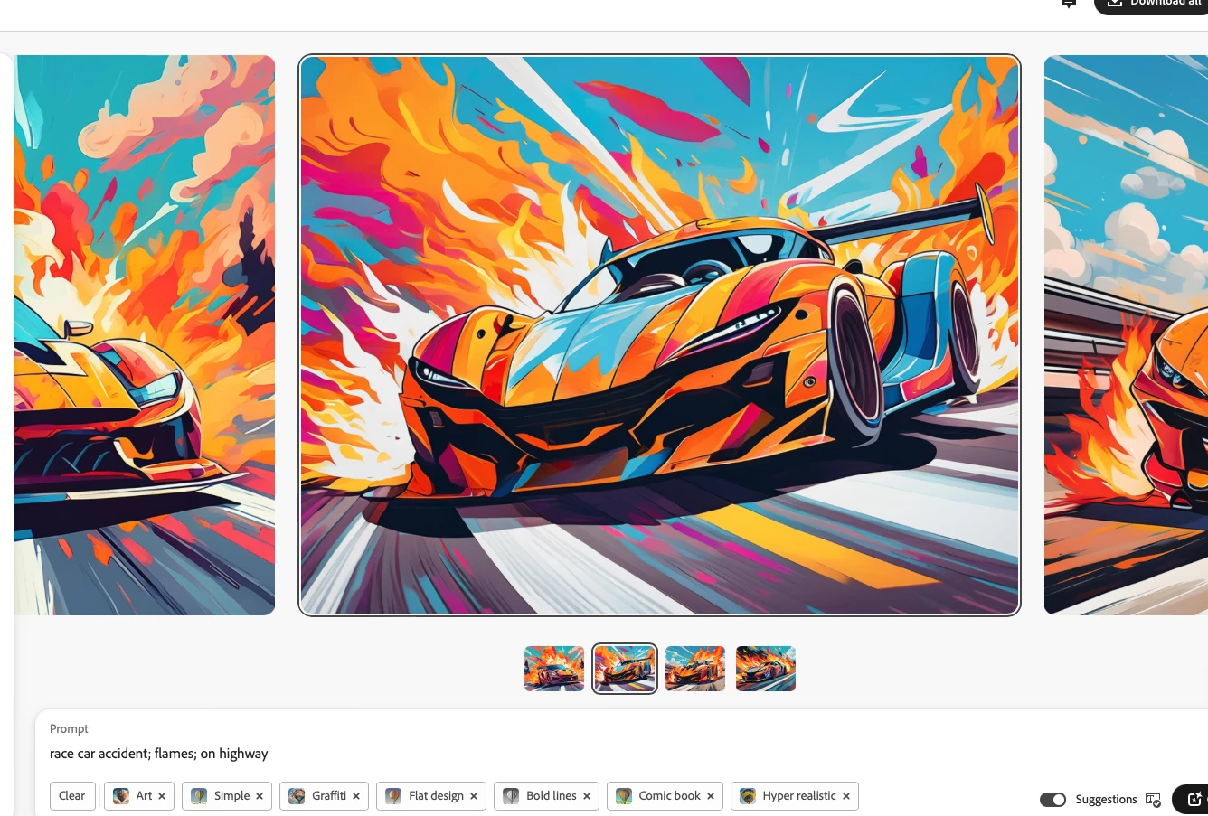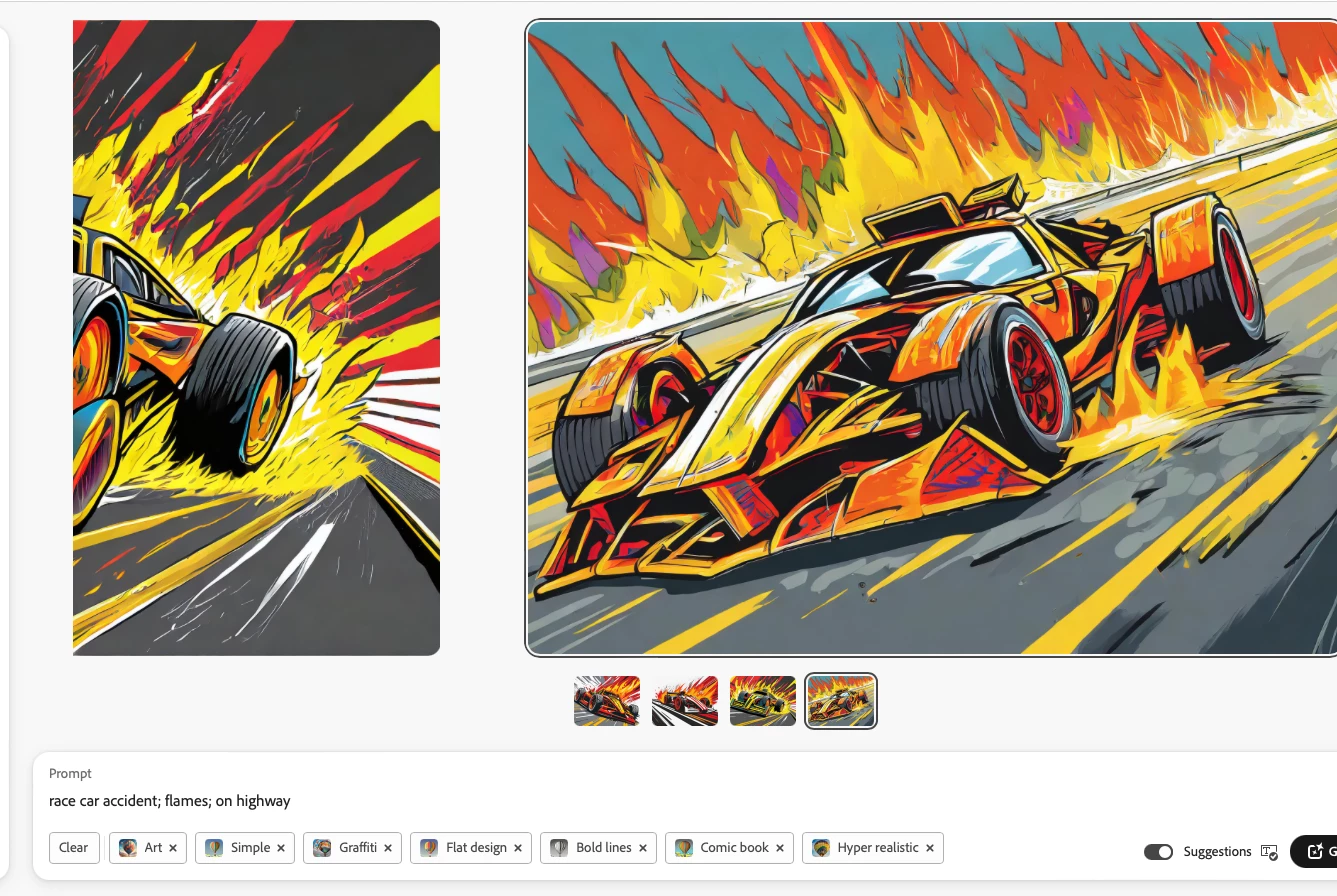 In this example, the subject outputs are similar but the image 3 output appears to be "cleaner" and more of a refined vector illustartion or cartoon vs image 2 outputs which is more "raw".