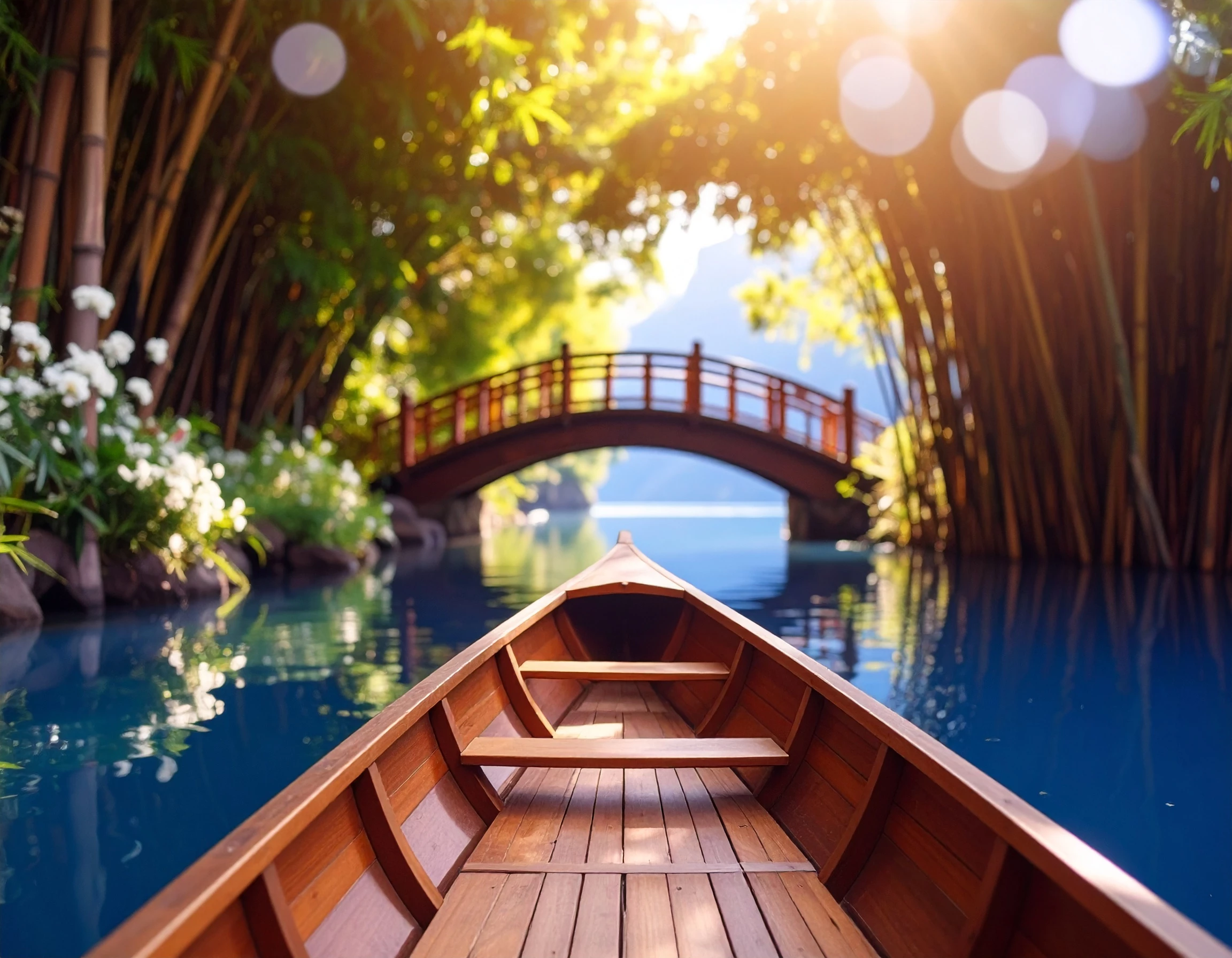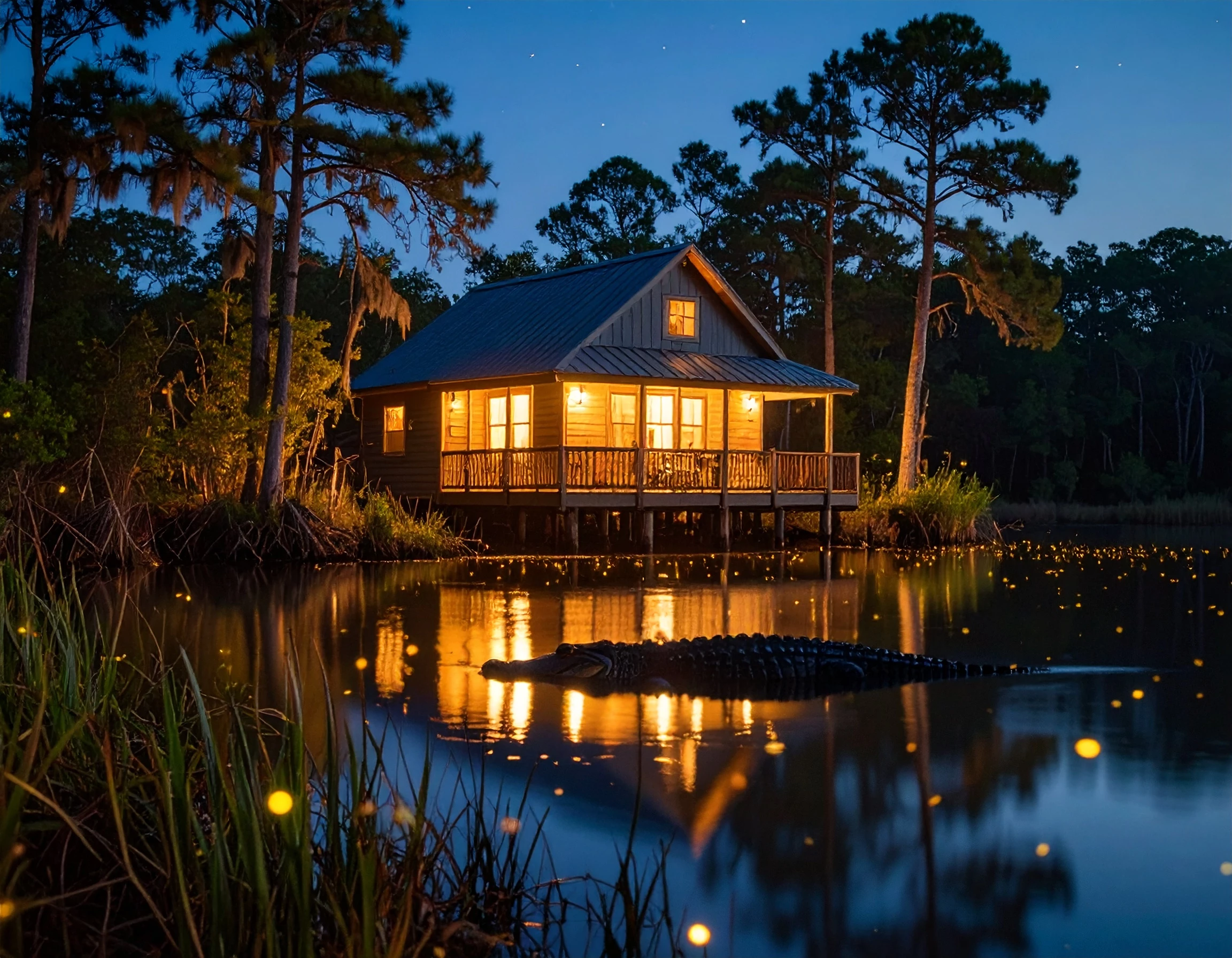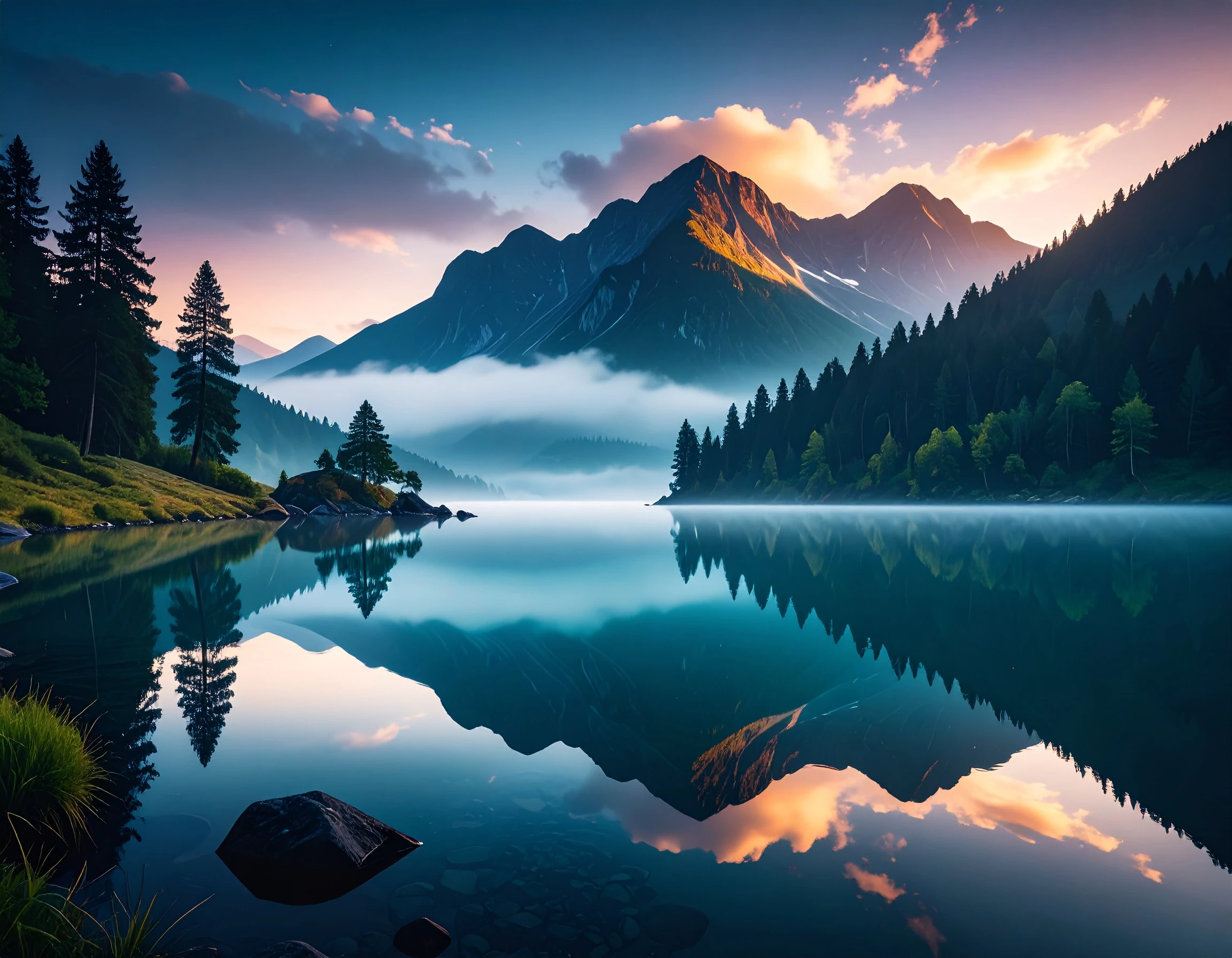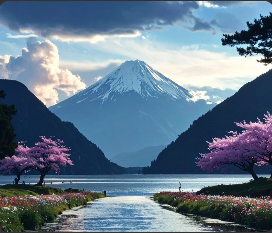 The Prompt I used: A serene lakeside at golden hour. Calm water reflects a pastel sky, bordered by tall pines and wildflowers. A cozy cabin nestles near a wooden dock, with a rowboat drifting nearby. Mist rises from the lake, mountains loom in the distance, and birds soar above in peaceful stillness.