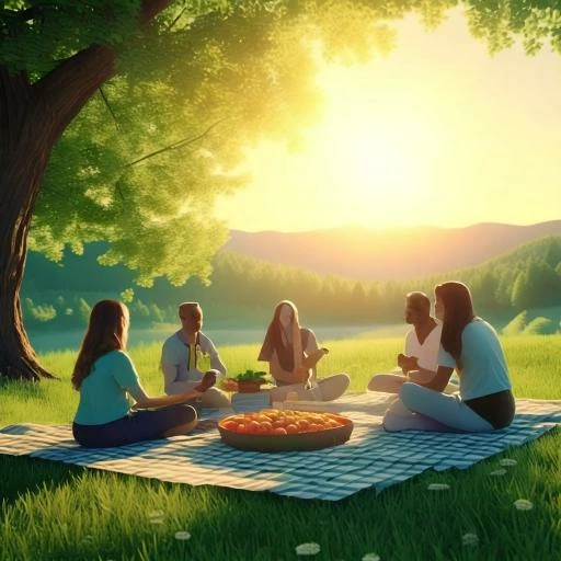 The Prompt I used: Imagine a peaceful picnic scene with a cozy checkered blanket spread beneath the shade of a tall, leafy tree. On the blanket, there are delicious sandwiches, fresh fruit, and chilled beverages, creating the perfect relaxing escape into nature on a warm, sunny day