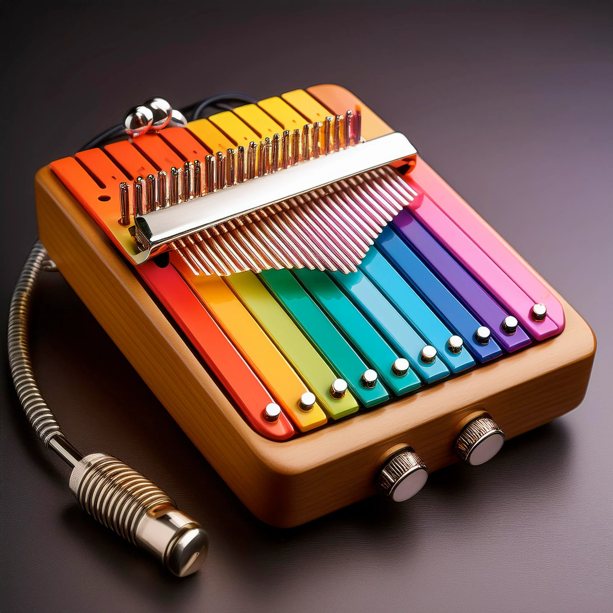 This was supposed to be a “colorful kalimba with 1/4 inch jack socket and cable“, but it turned out something that looks even more fun to play. How shall I call it? Perhaps … E-Xylomba?