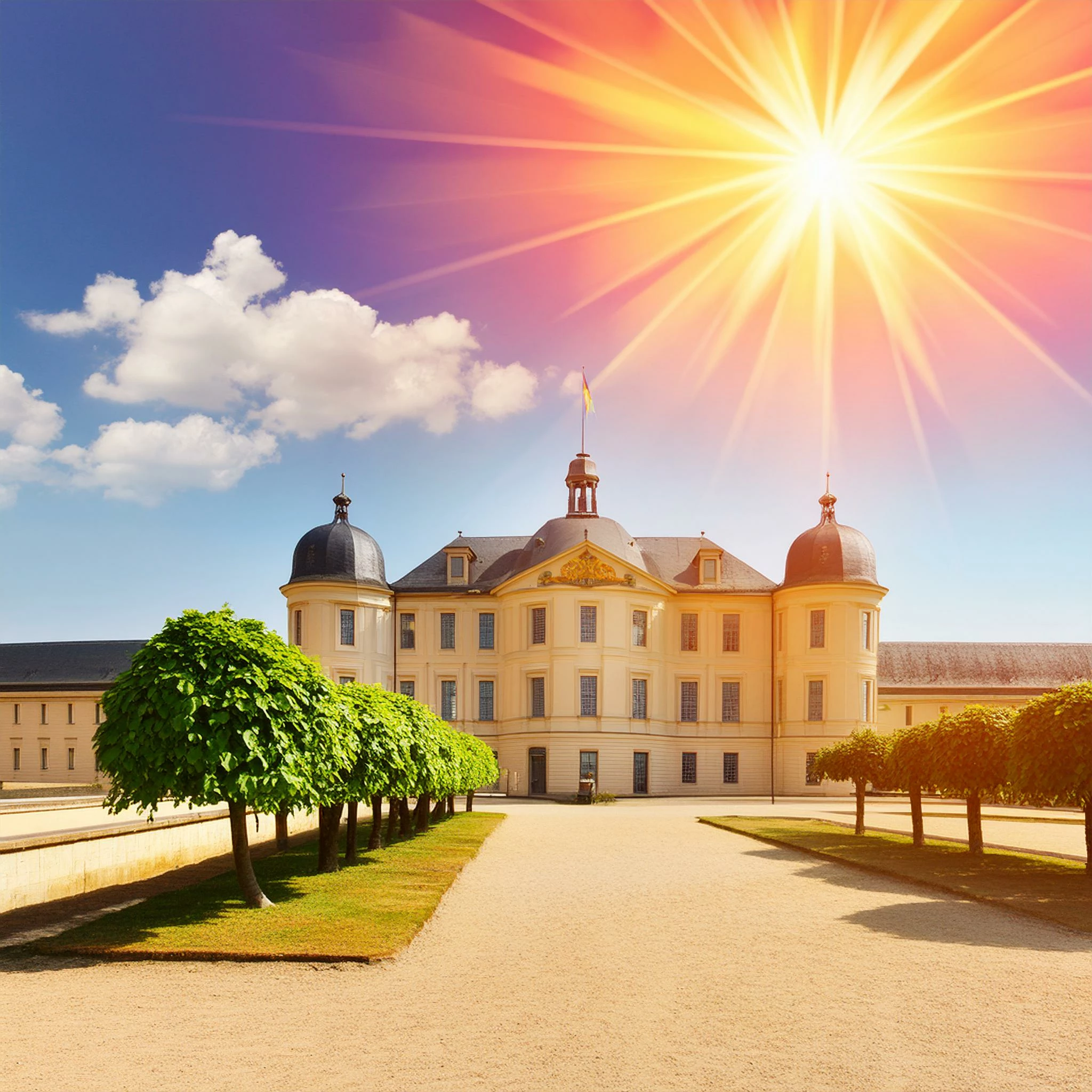 "Castle Karlsruhe, direct sun, no clouds, blue sky, very warm" - I mean, we are one of the German cities with the most sun, this picture might not be the most beautiful, but it's definitely accurate