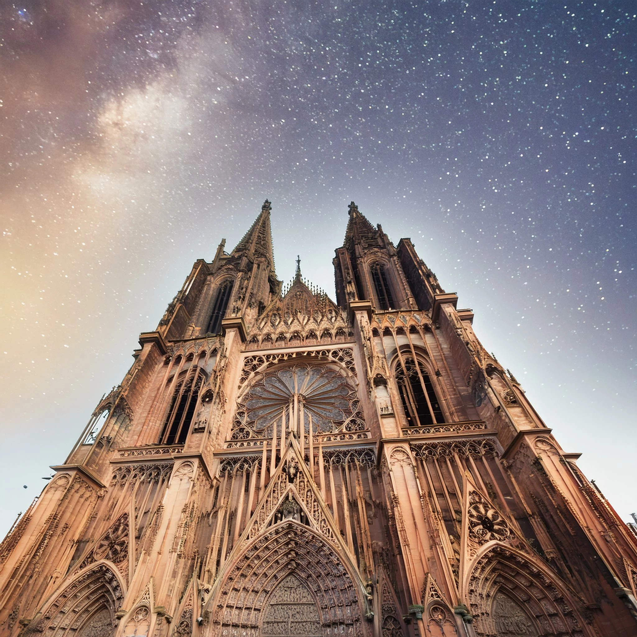 My Prompt : Strasbourg city cathedrale gratte ciel sun sky stars