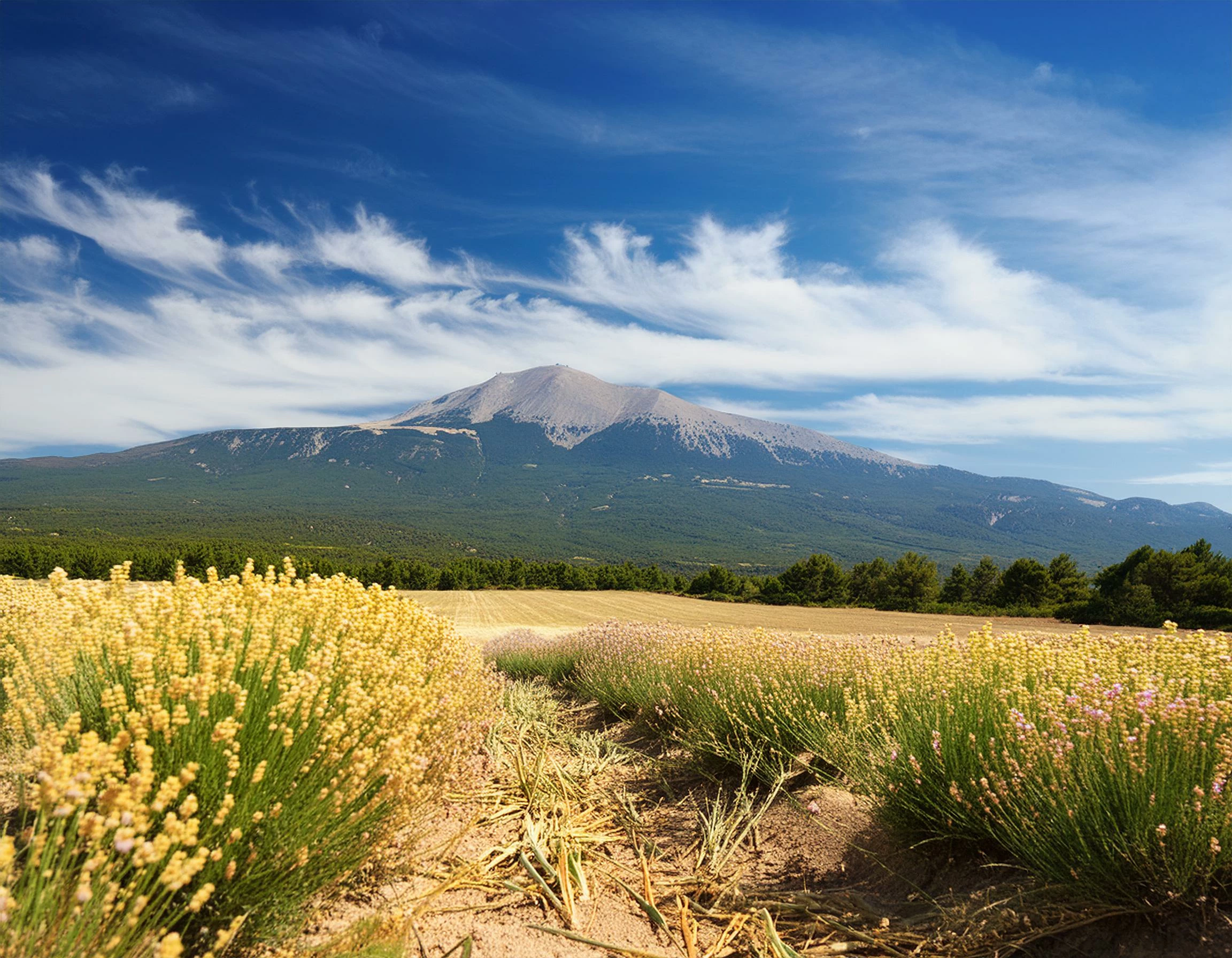 Le Mont Ventoux en été vu depuis la plaine.