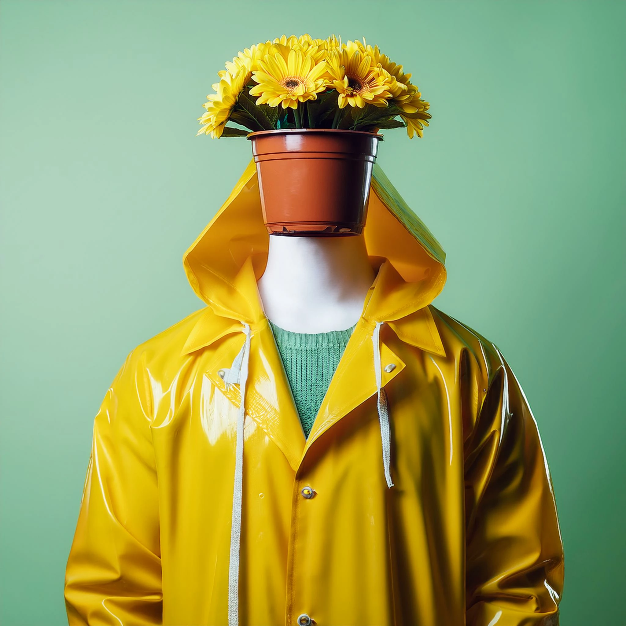 Then I went for "dress up in a raincoat with a flower pot on your head."
