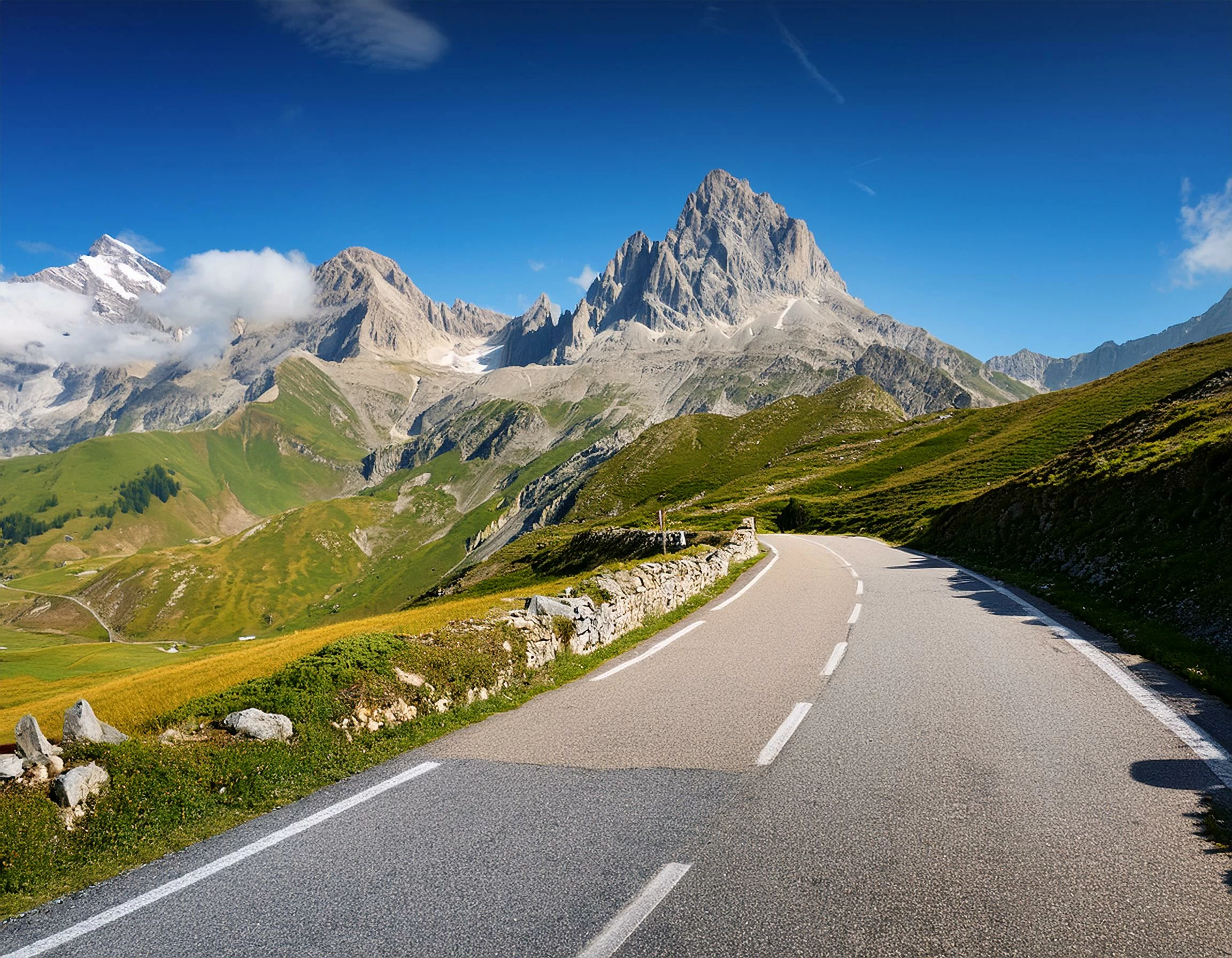 La route des grandes Alpes avec le col de la Bonette en arrière-plan