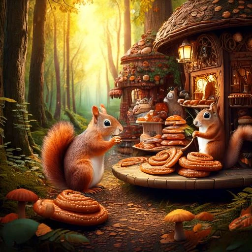 Enchanted forest has a bakery selling cinnamon buns to squirrels