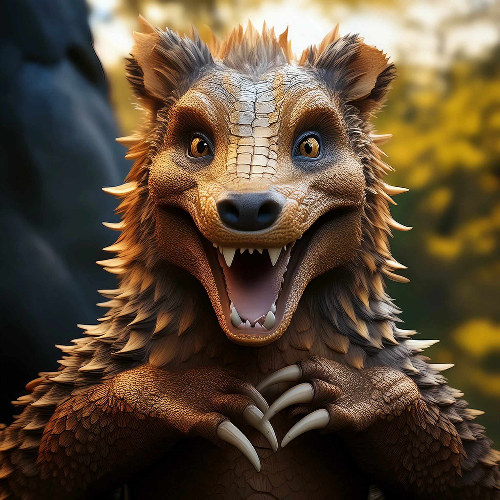a playful medieval mythical creature mixture between dragon and teddybear