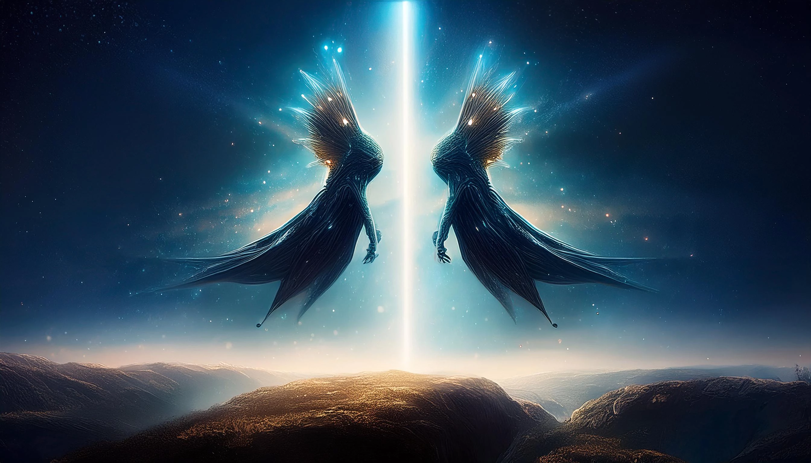 A twin star creature descending to earth from the heavens.