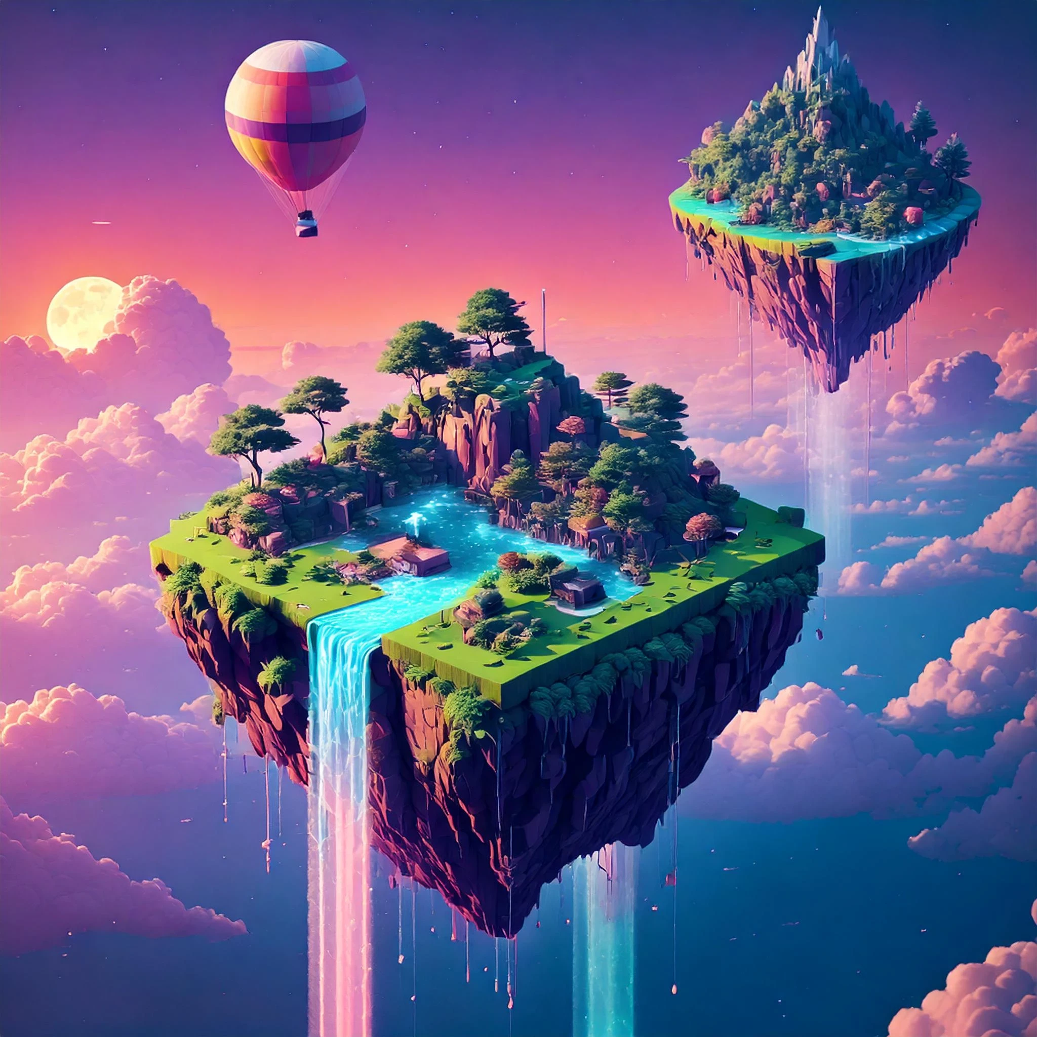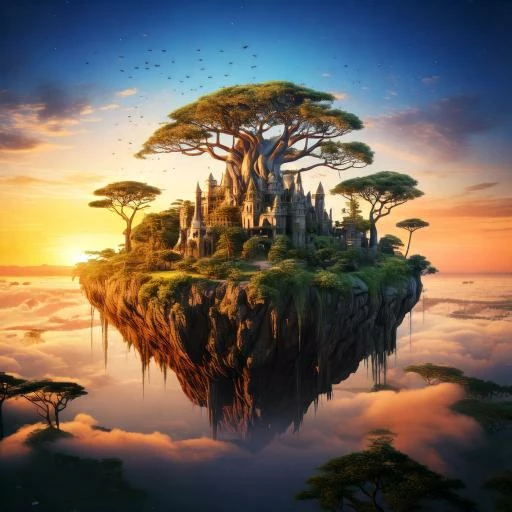 Step into a world of tranquility and enchantment! We invite you to bring to life your own serene vision of a castle floating among levitating islands, surrounded by cascading waterfalls . This challenge is all about capturing the magic and serenity of a dreamlike realm where peaceful waters meet sky-high islands.