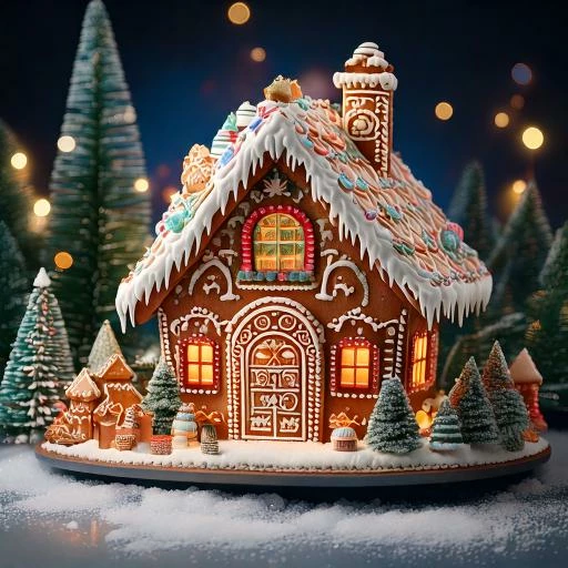 Ooops! I just realized I left out the actual gingerbread. I added "made out of gingerbread" to my previous prompt and removed hyper realistic and shot thru a window for this one.