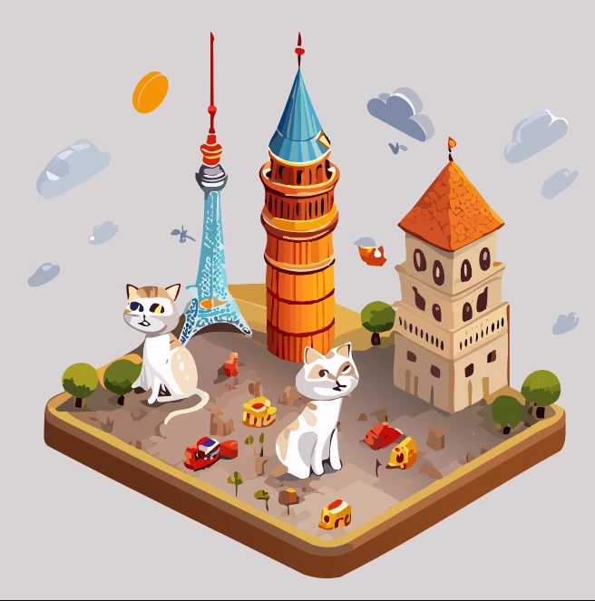 Prompt: "Cute Cats having fun in Istanbul, an iconic Istanbul view in the background including Galata tower, retro style, very detailed" (Firefly made a compilation of iconic places from the world as I see it, but turned out to be great! 😻)